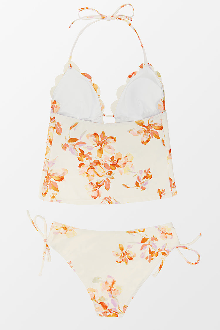 Adeline Floral Plunge Halter Scalloped Low Waisted Tankini