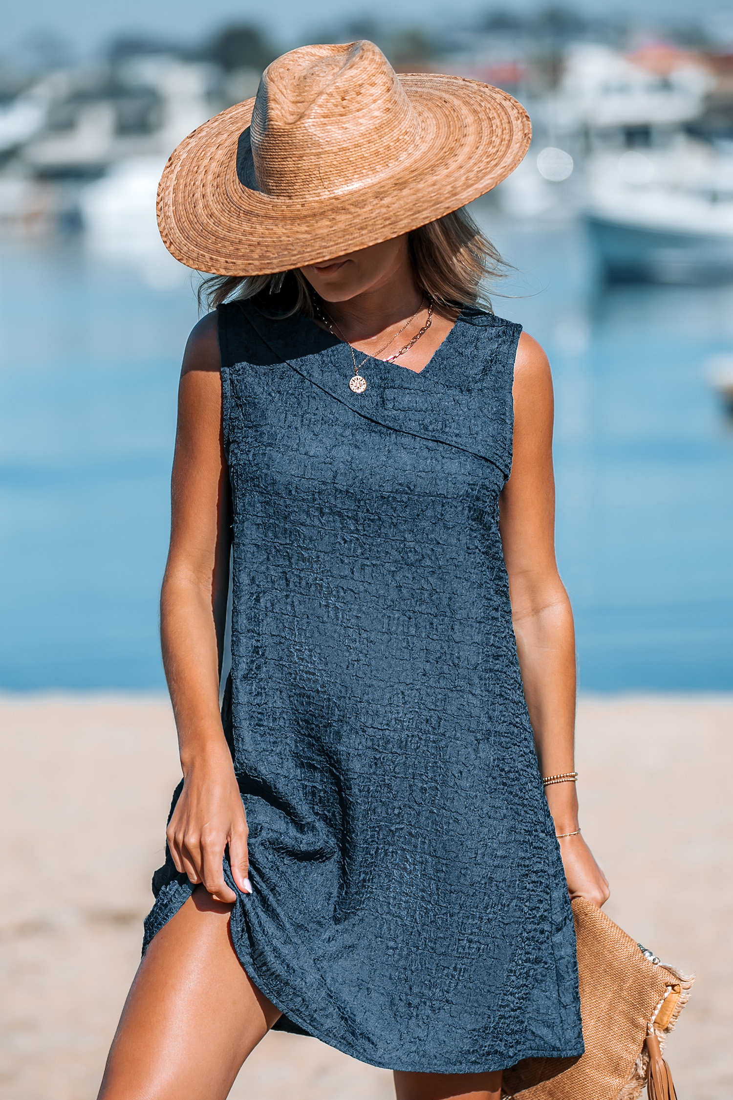 Aegean Blue Foldover Midi Dress