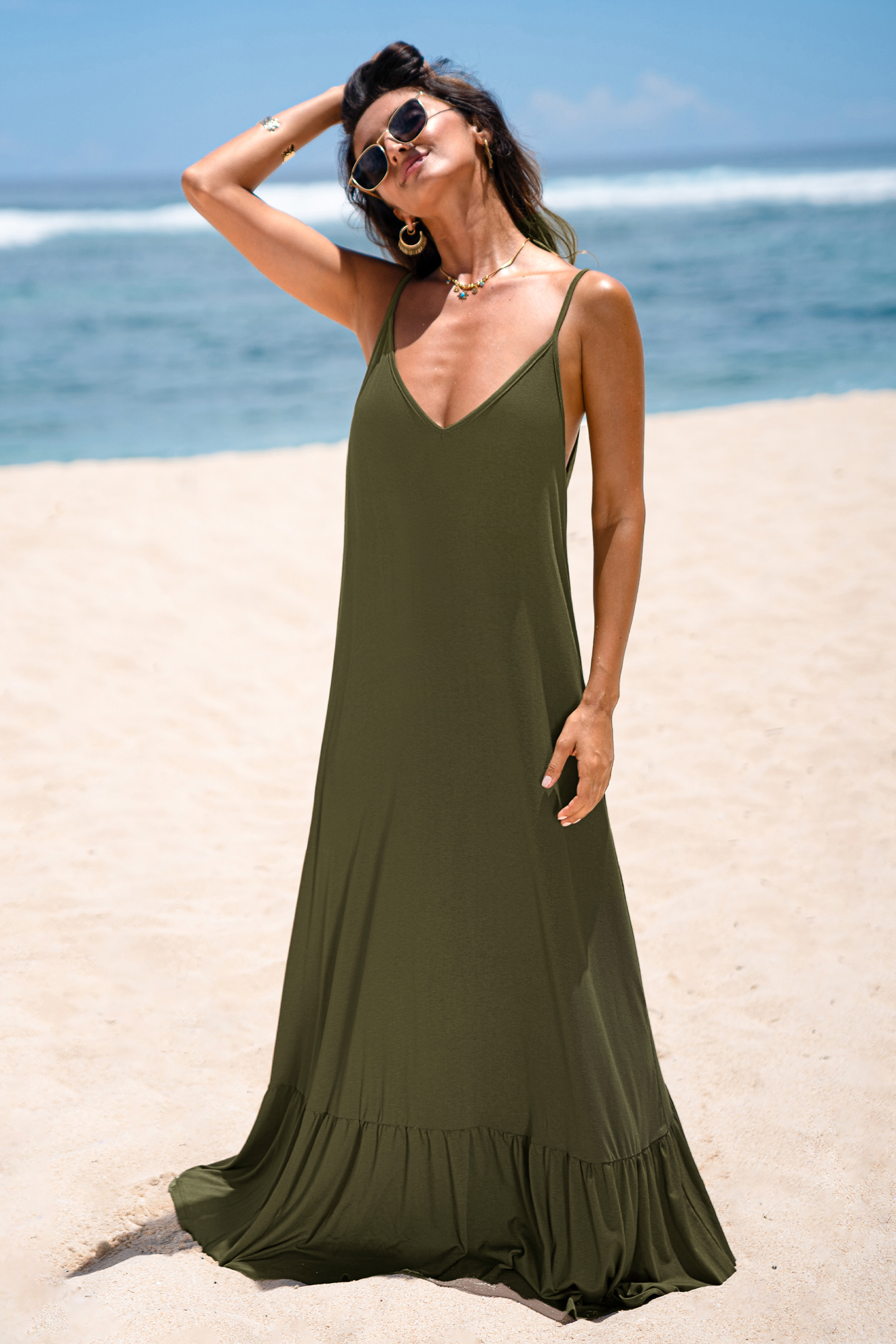 Keep things soft and floaty in the Always Dreamy Green Maxi Dress! The V-neckline, sleeveless cut, and ruffled hem bring an airy vibe to this relaxed, wear-anywhere maxi.