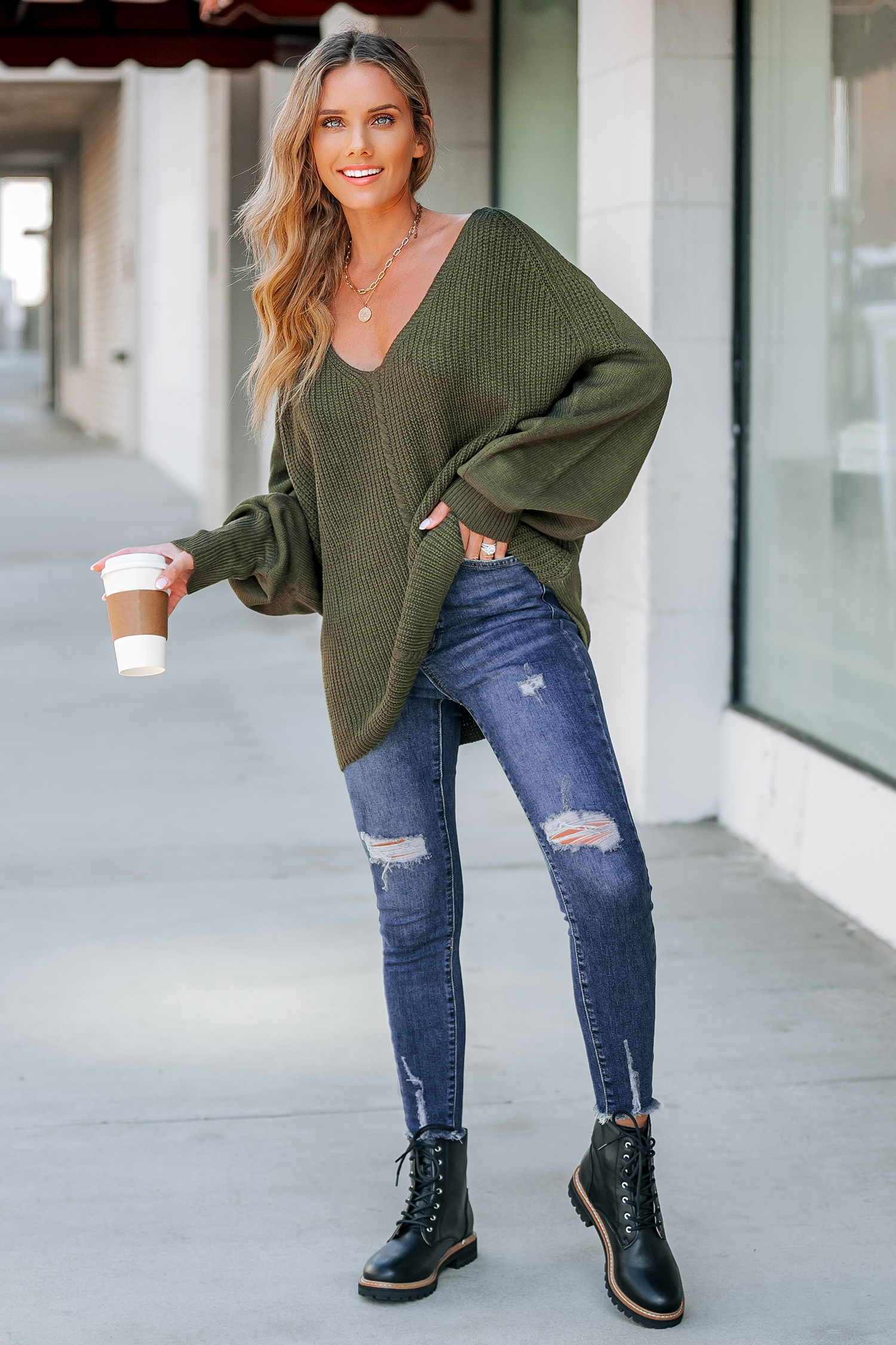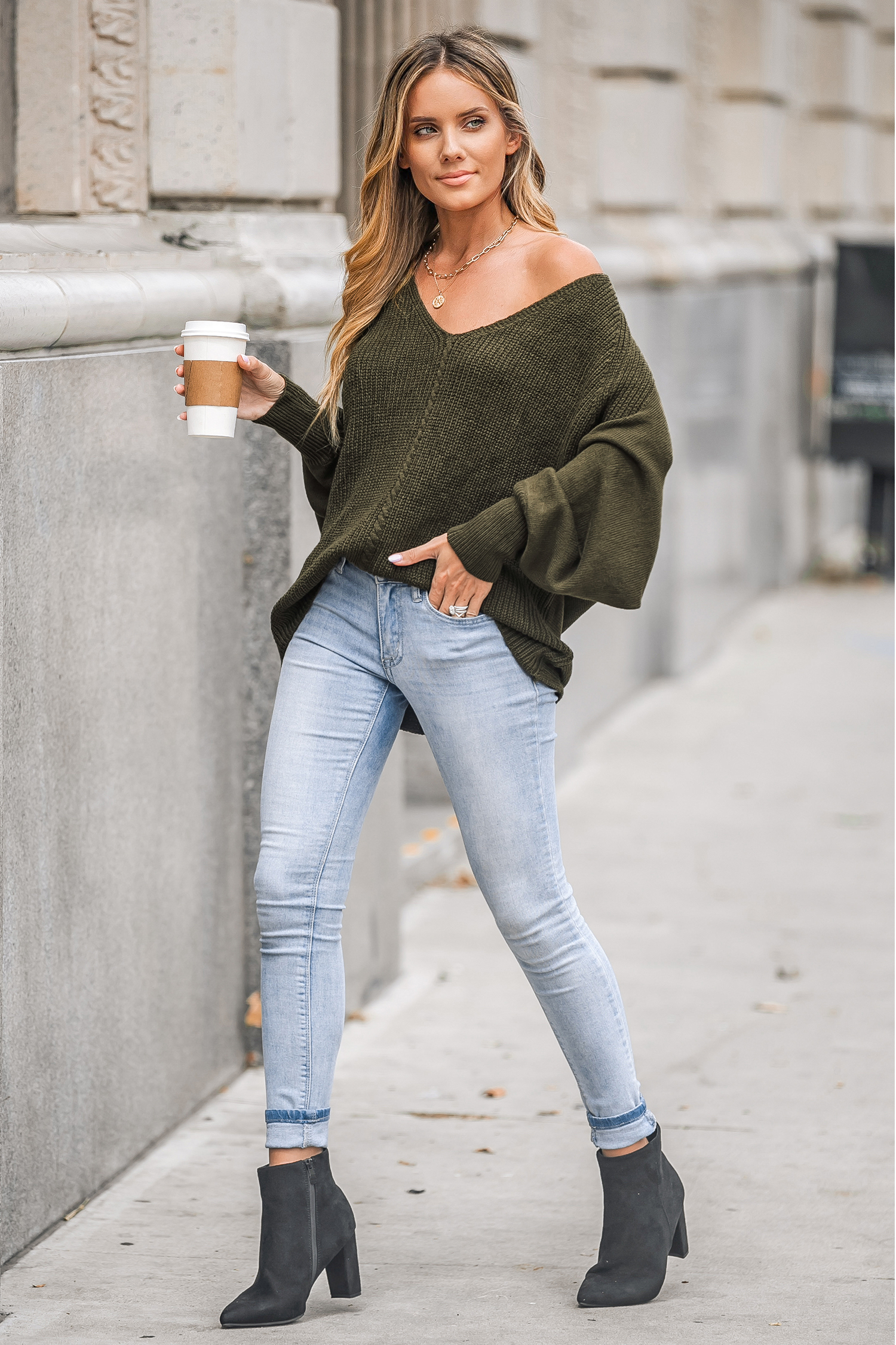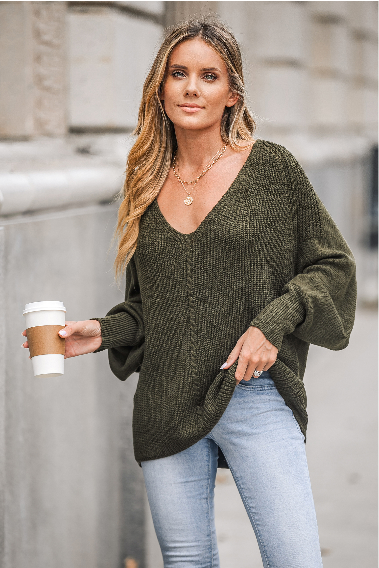 Influencer Edits Autumn Leaves Chunky Knit V-Neck Sweater