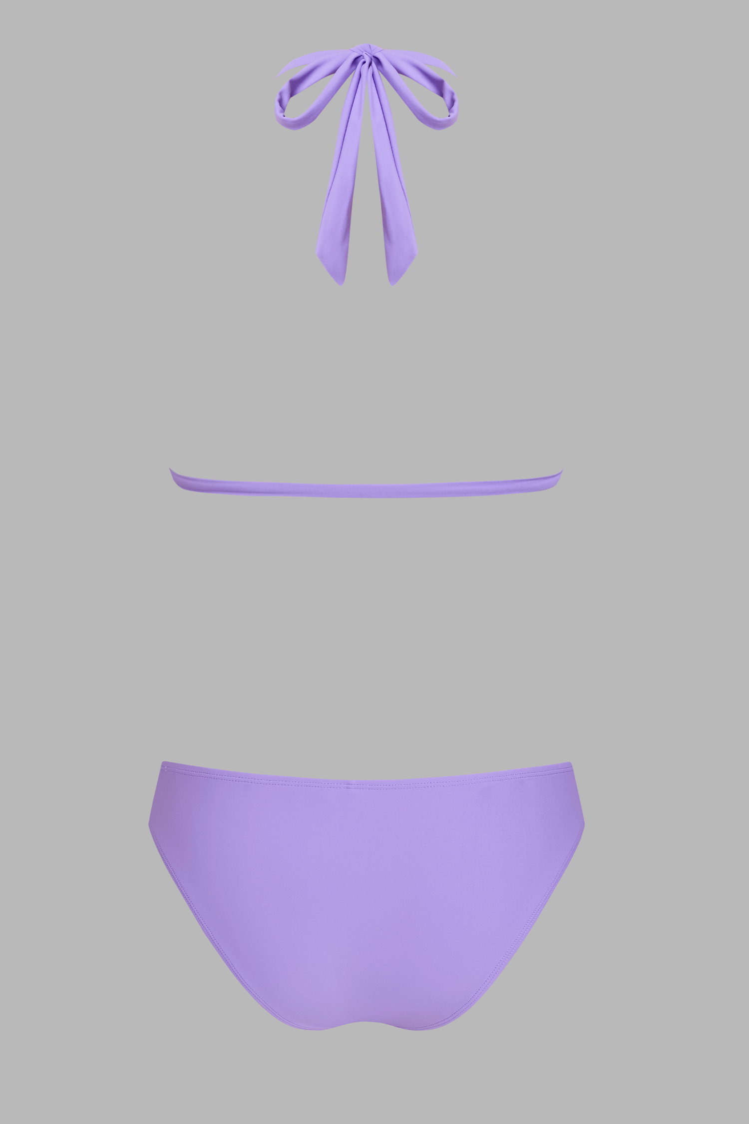 The Bahama Moment Bikini Set brings pure getaway energy! A diamond neckline meets halter straps and light bust support from removable soft cups, while the high-cut leg keeps the whole look feeling bright and beachy.