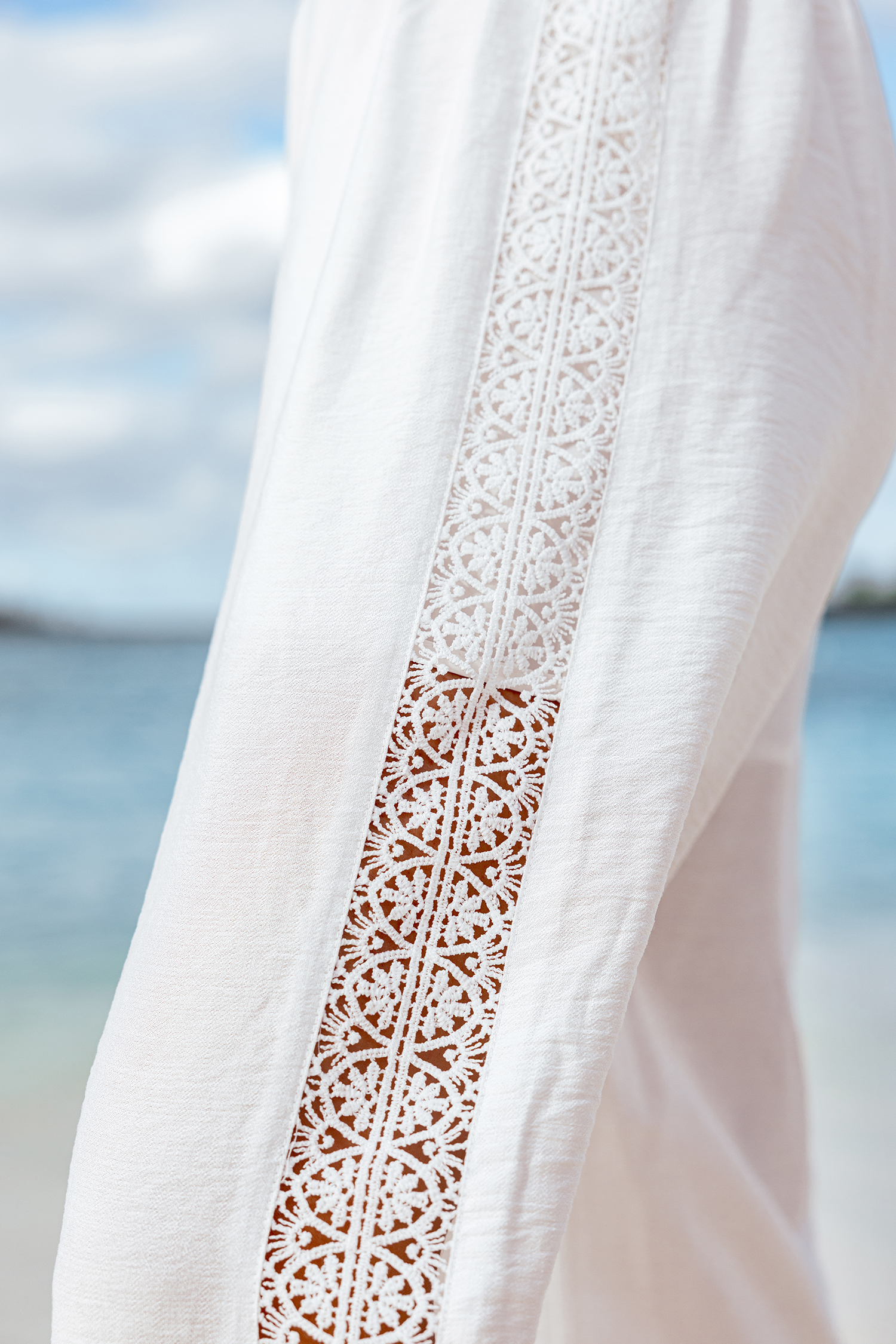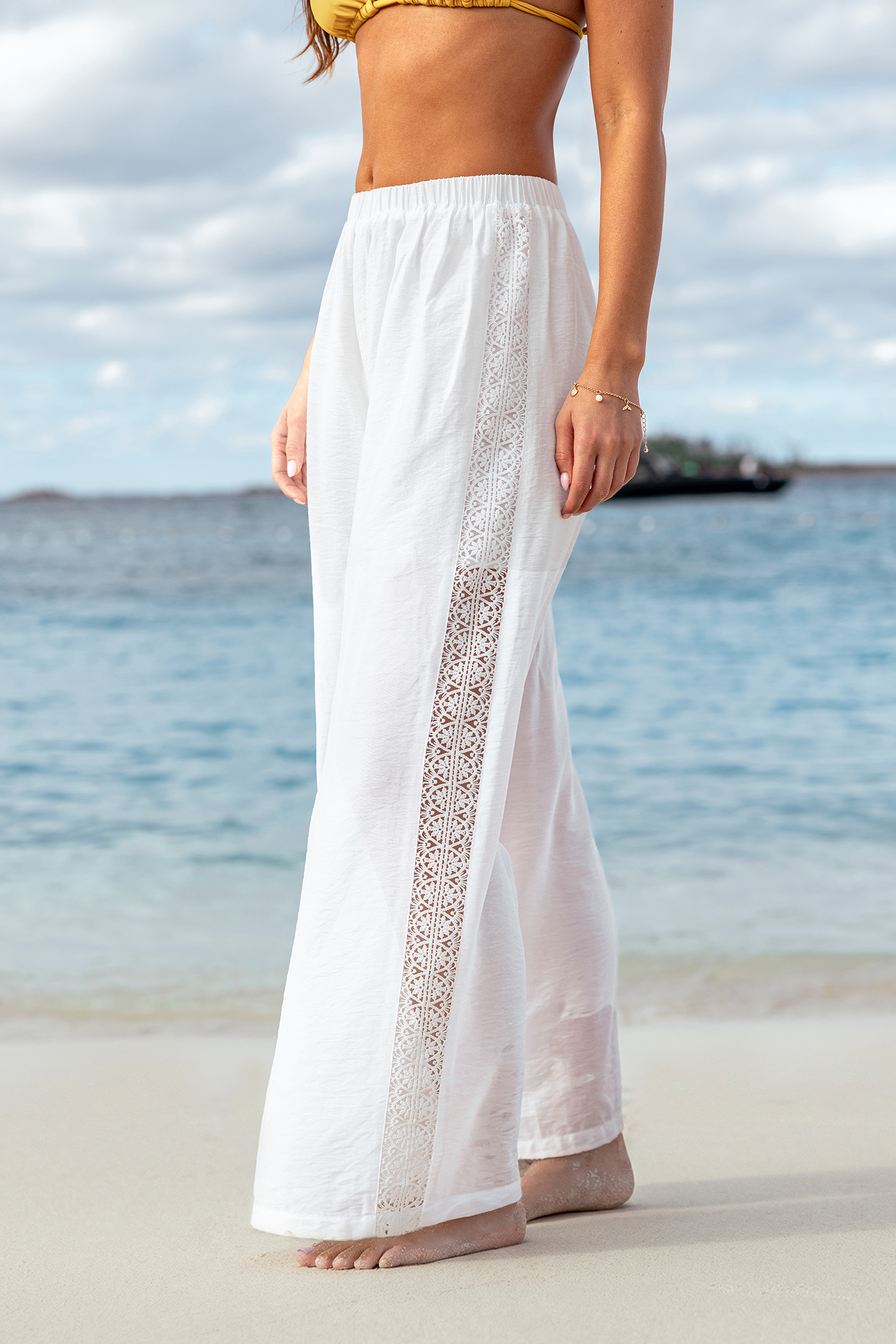 The Sunshine Ritual Pants are made for easy warm-weather days! The elasticized waist keeps the fit comfortable, and the wide leg adds a clean, breezy flow.