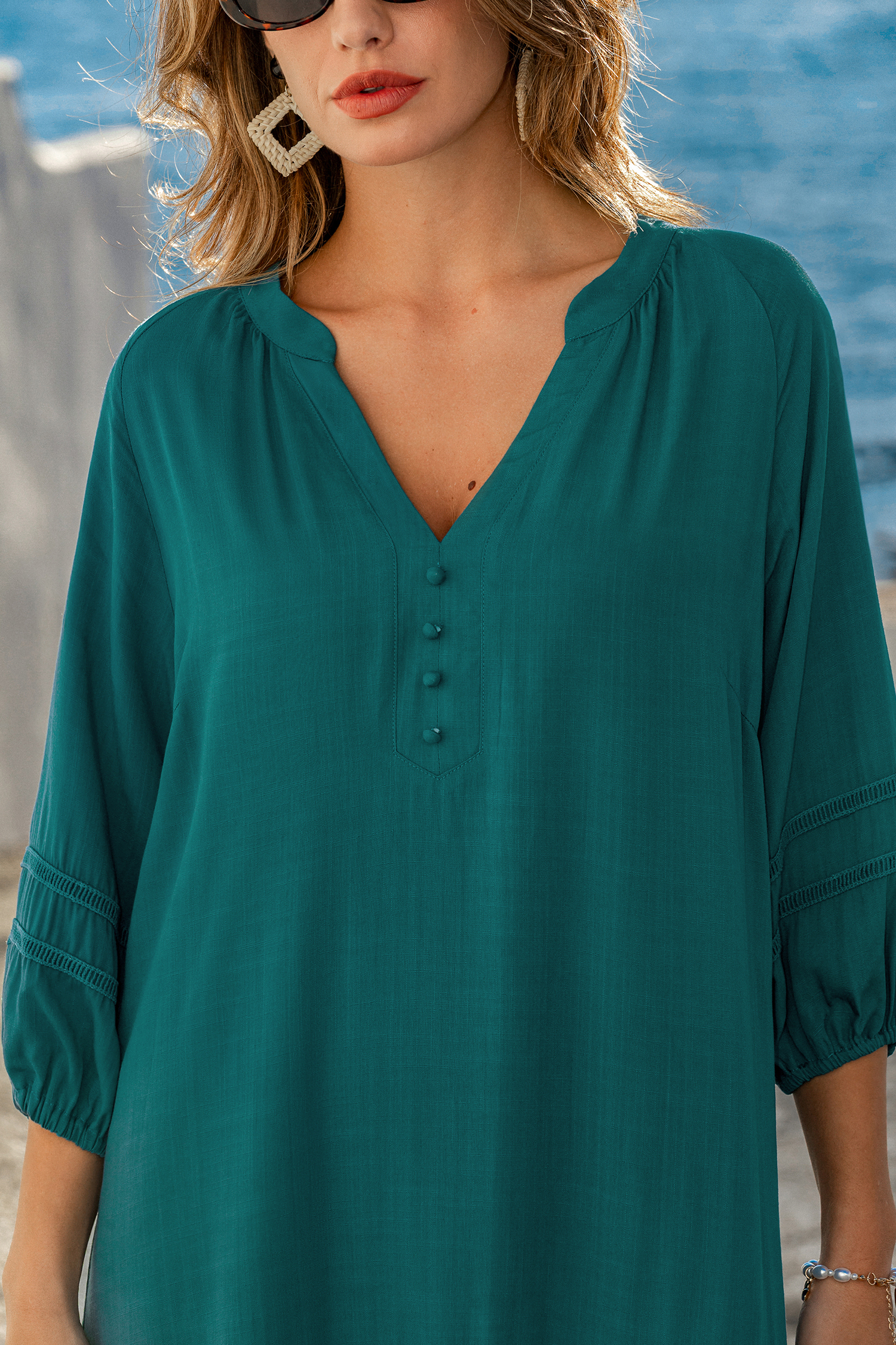 The Believer Aqua Mini Dress is bright and full of uplifting energy! The notched neckline, half sleeves, and mini length give it a breezy, cheerful vibe.