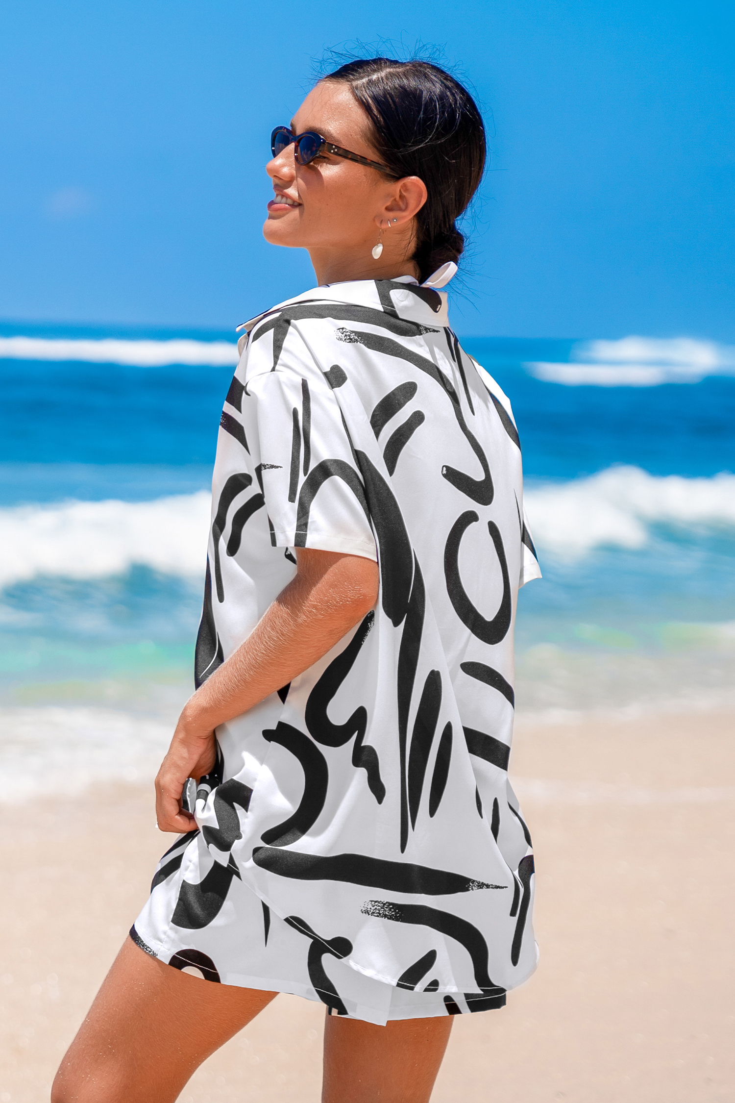 HomeBlack-and-White Abstract Shirt & Shorts Set
