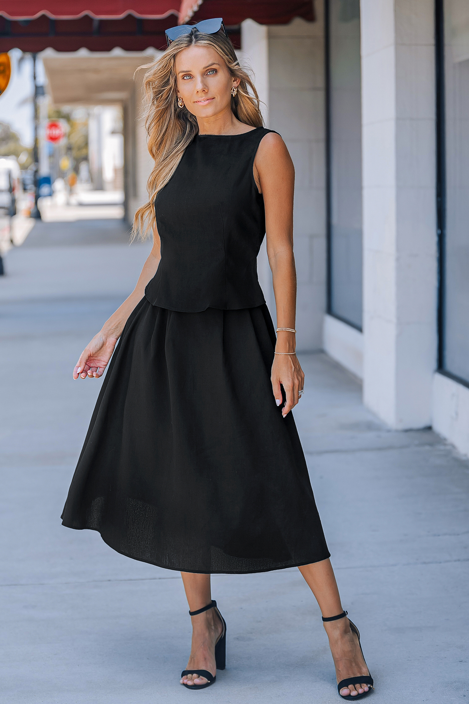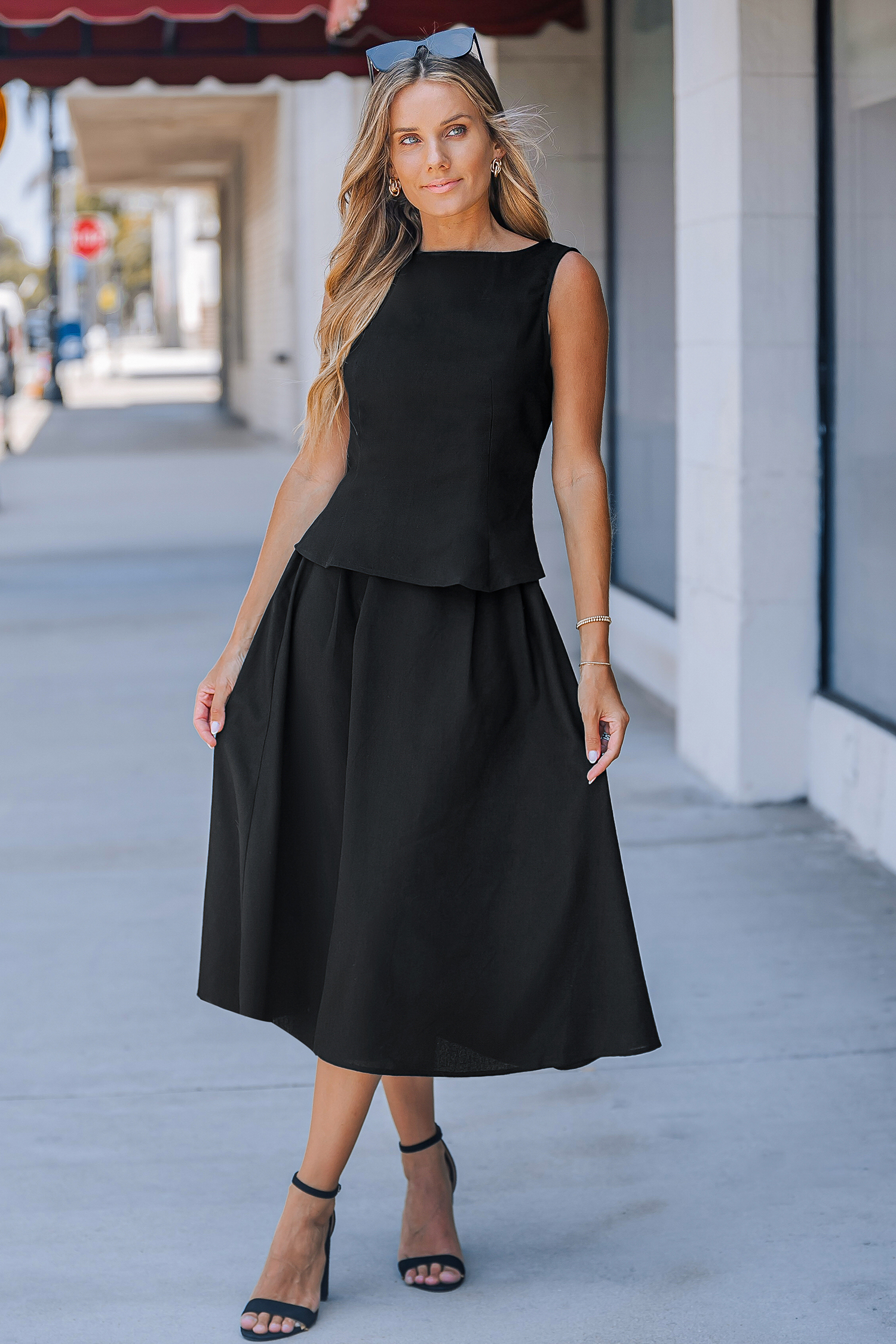 Black Sleeveless Boatneck Top & Midi Skirt Set