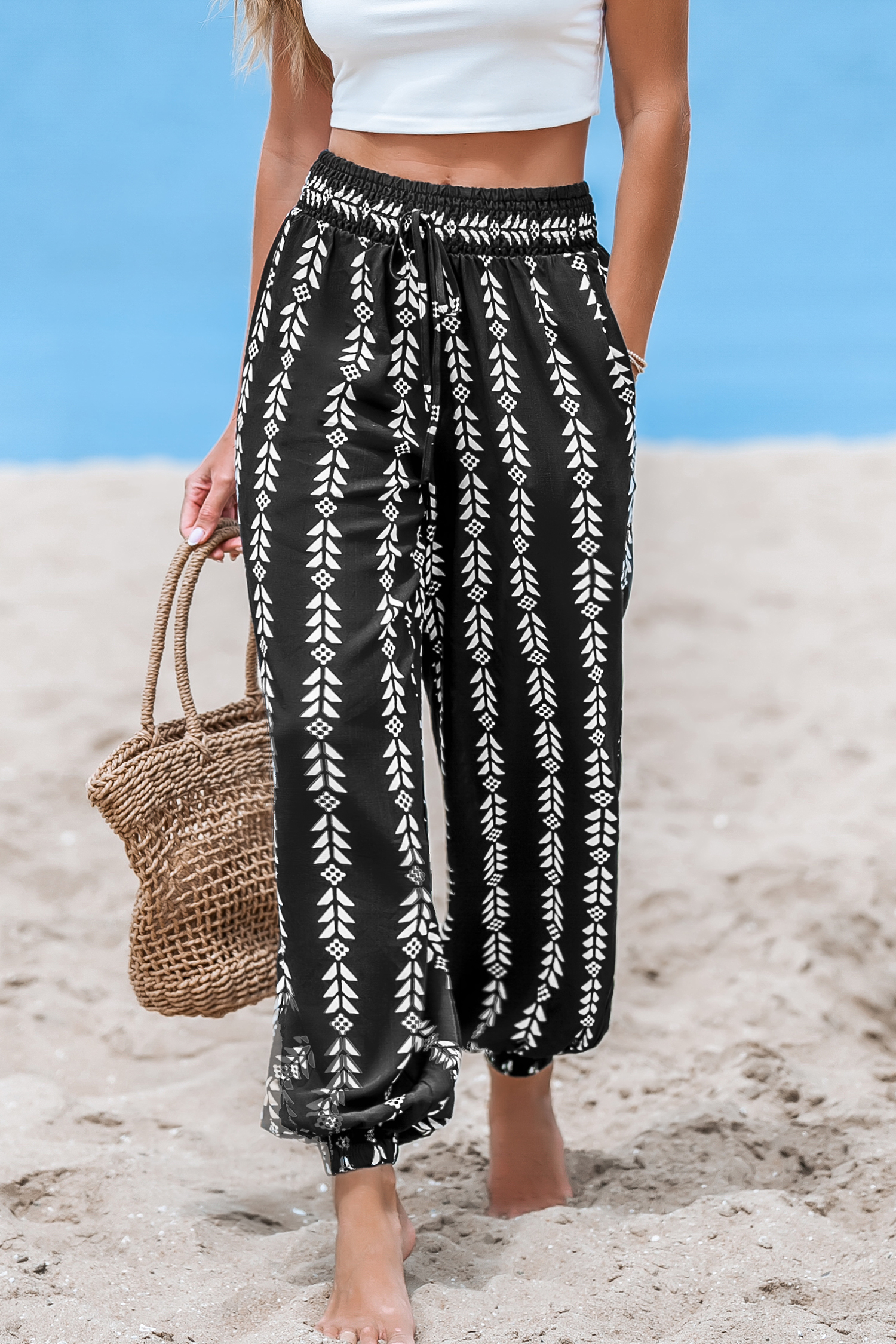 HomeBlack & White Arrow Striped Tapered Leg Pants