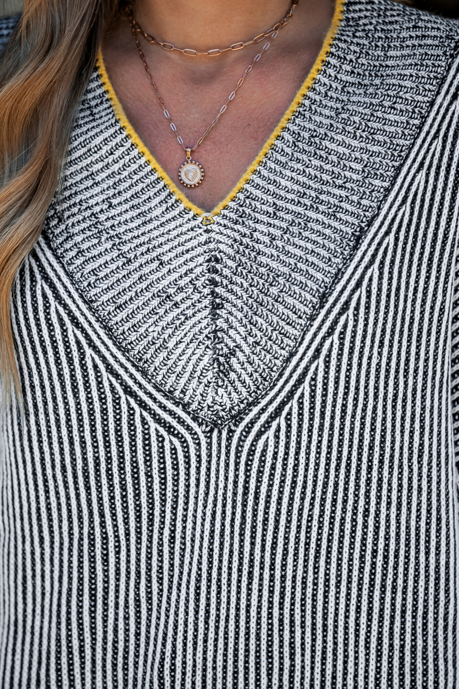 Black & White Stripe V-Neck Long Sleeve Sweater
