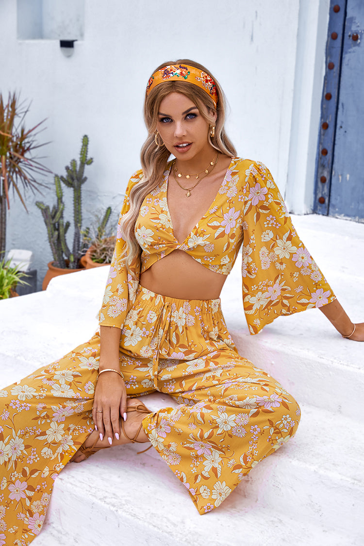 Blake Plunge Bell Sleeve Elastic Waist Coverup Set