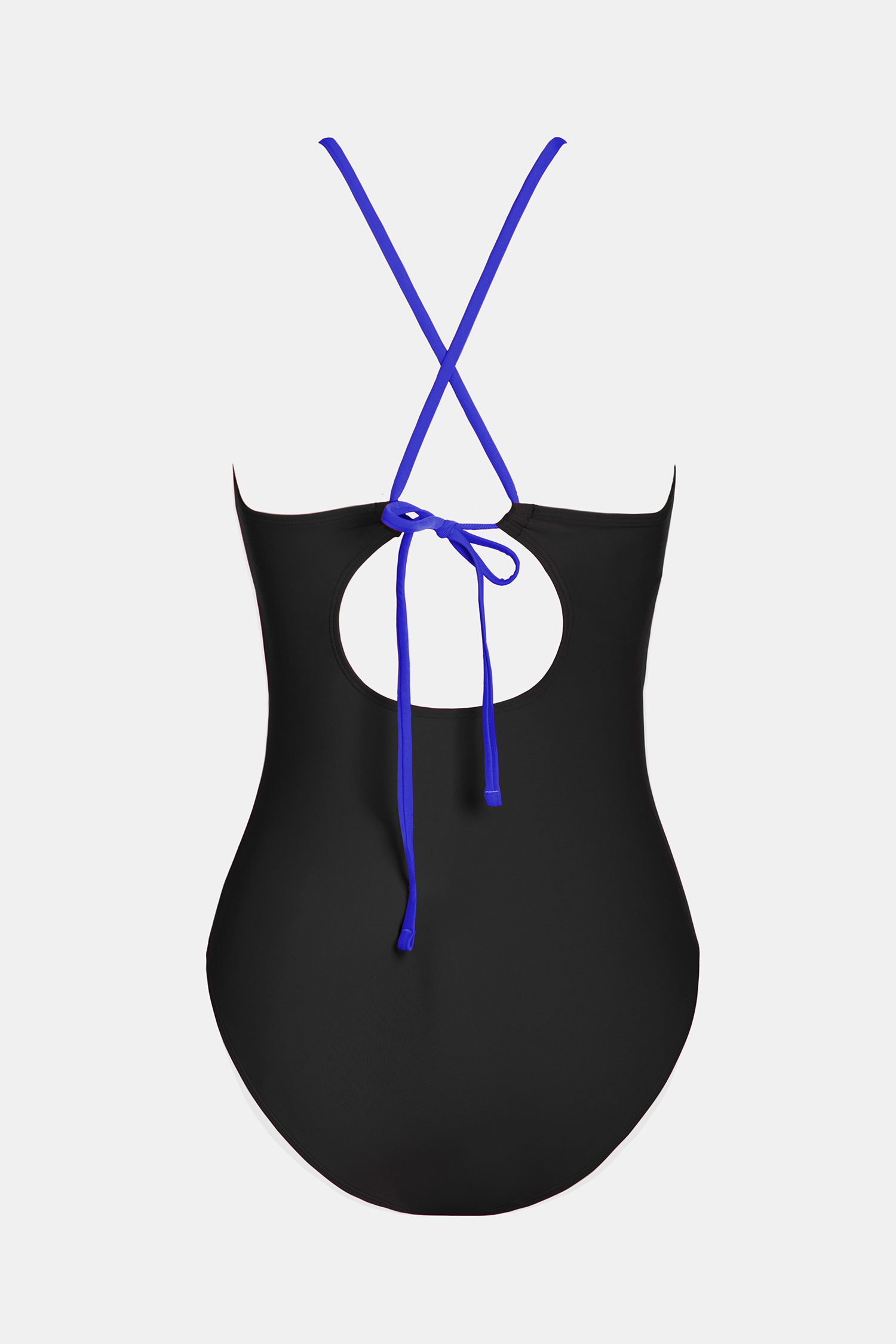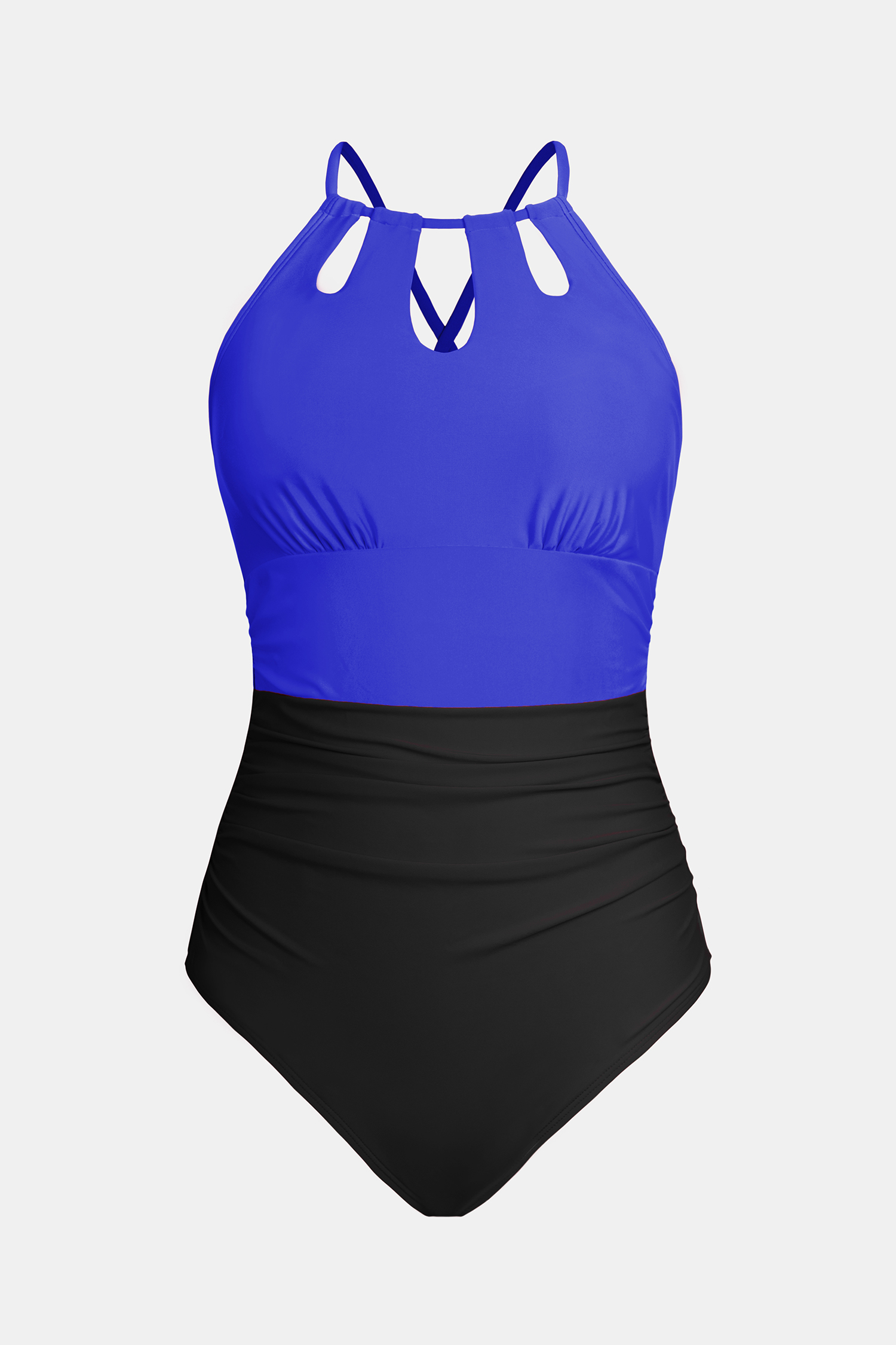 Blue & Black High Neck Cut-Out One Piece Swimsuit