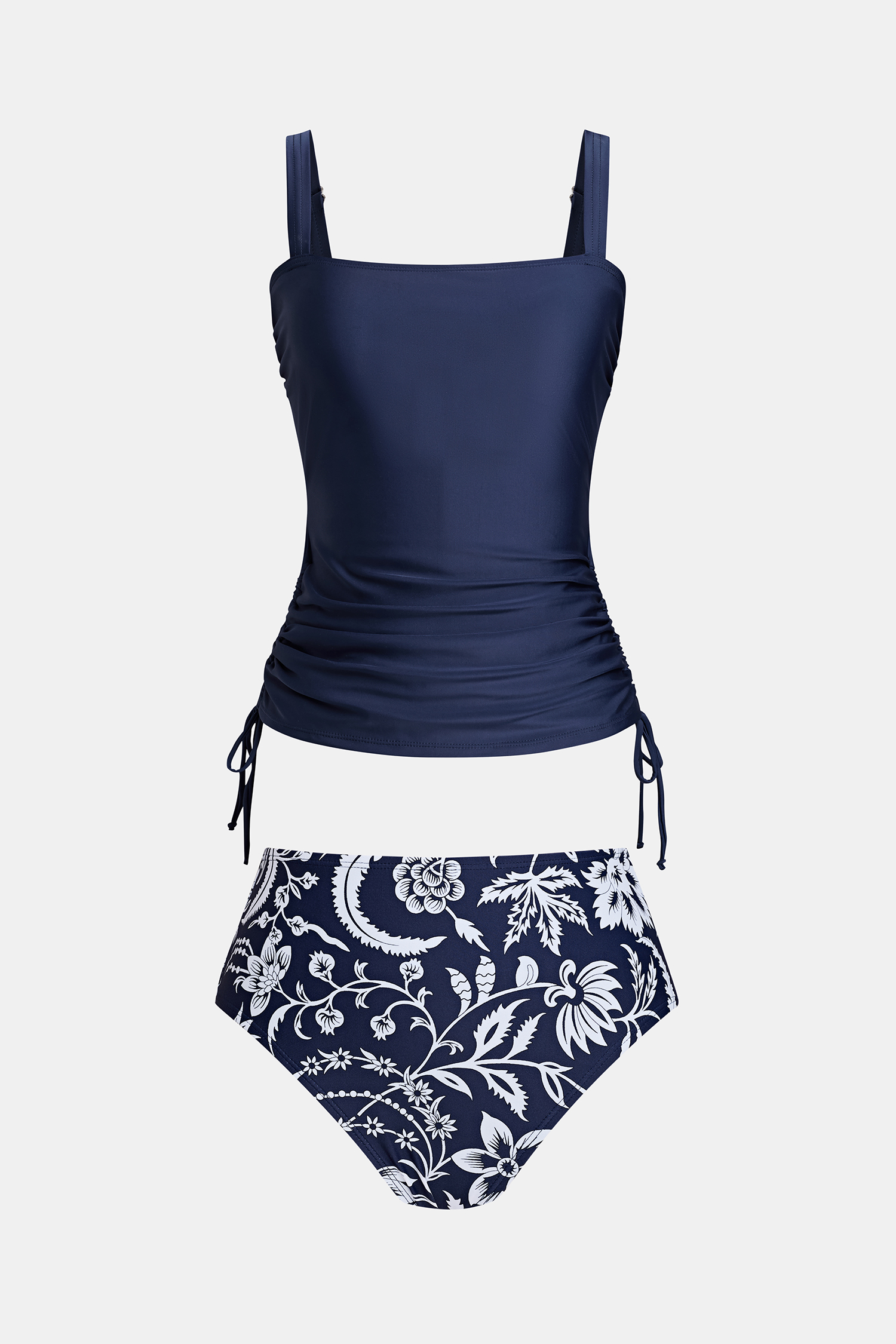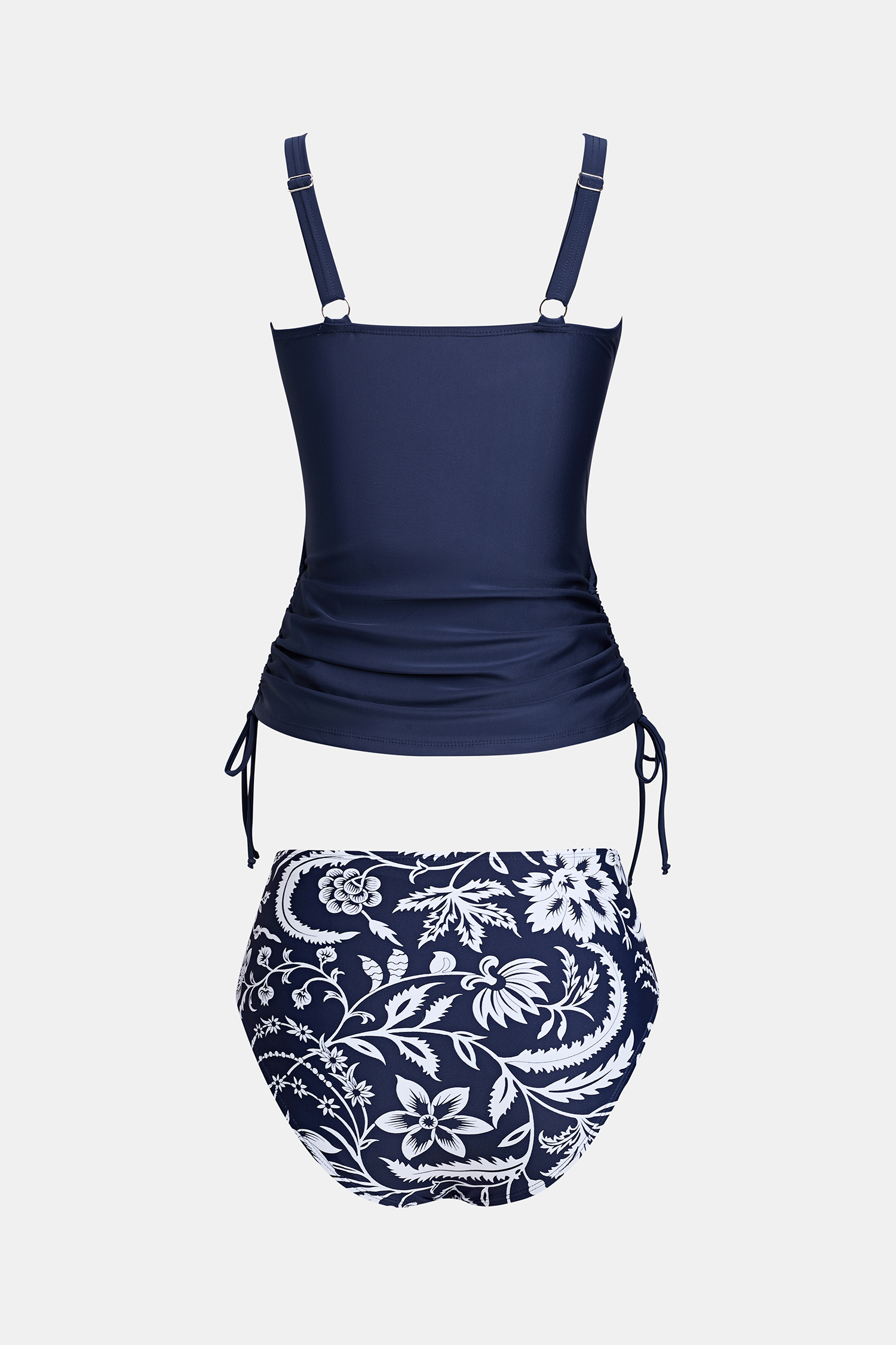 Blue Blooms Ruched Tankini Top & Bottoms Set