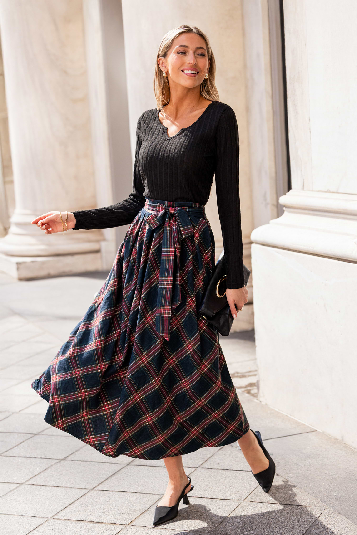 The Book Club Plaid Maxi Skirt brings preppy charm with a breezy twist! A waist tie and flowy maxi length make it the perfect piece for fall layering.