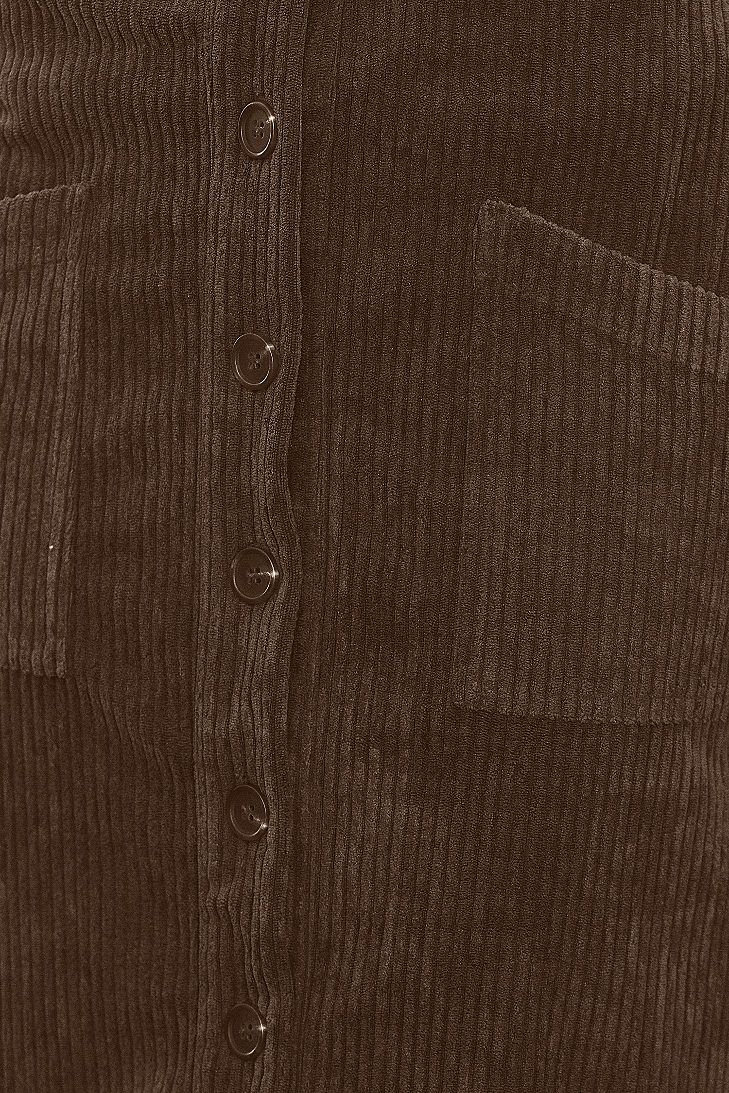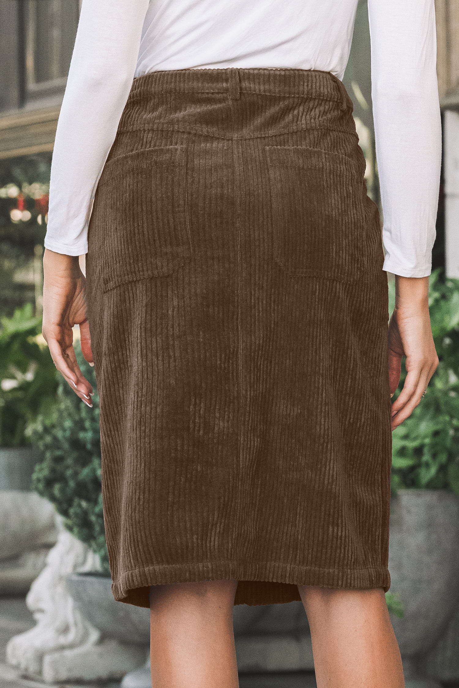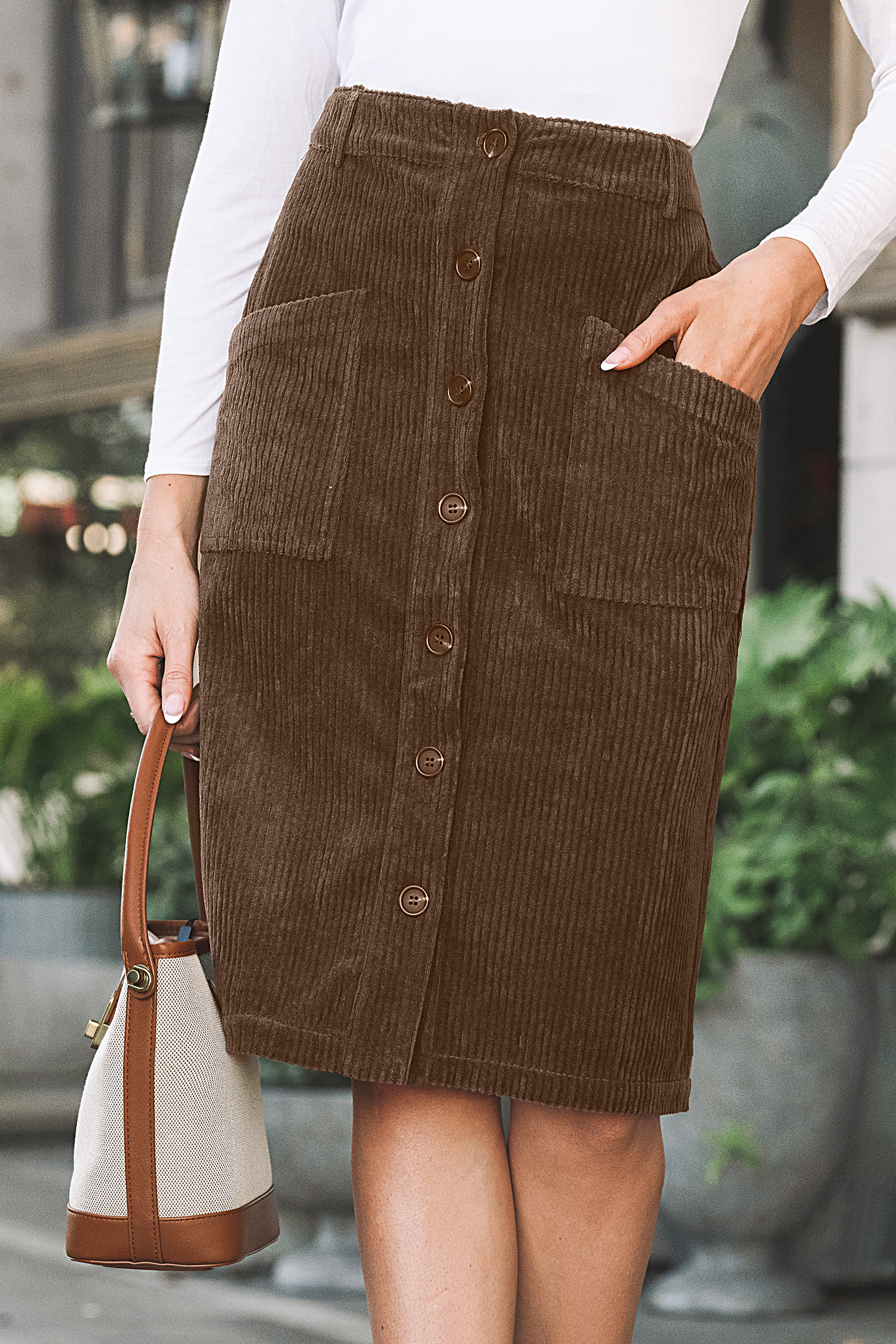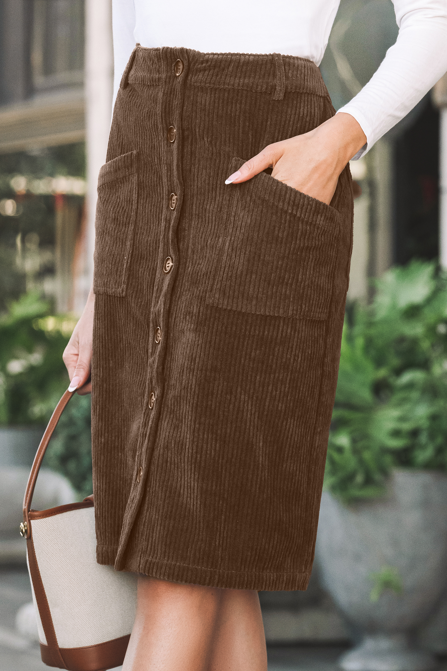 HomeBrown Corduroy Button Up Patch Pocket Midi Skirt