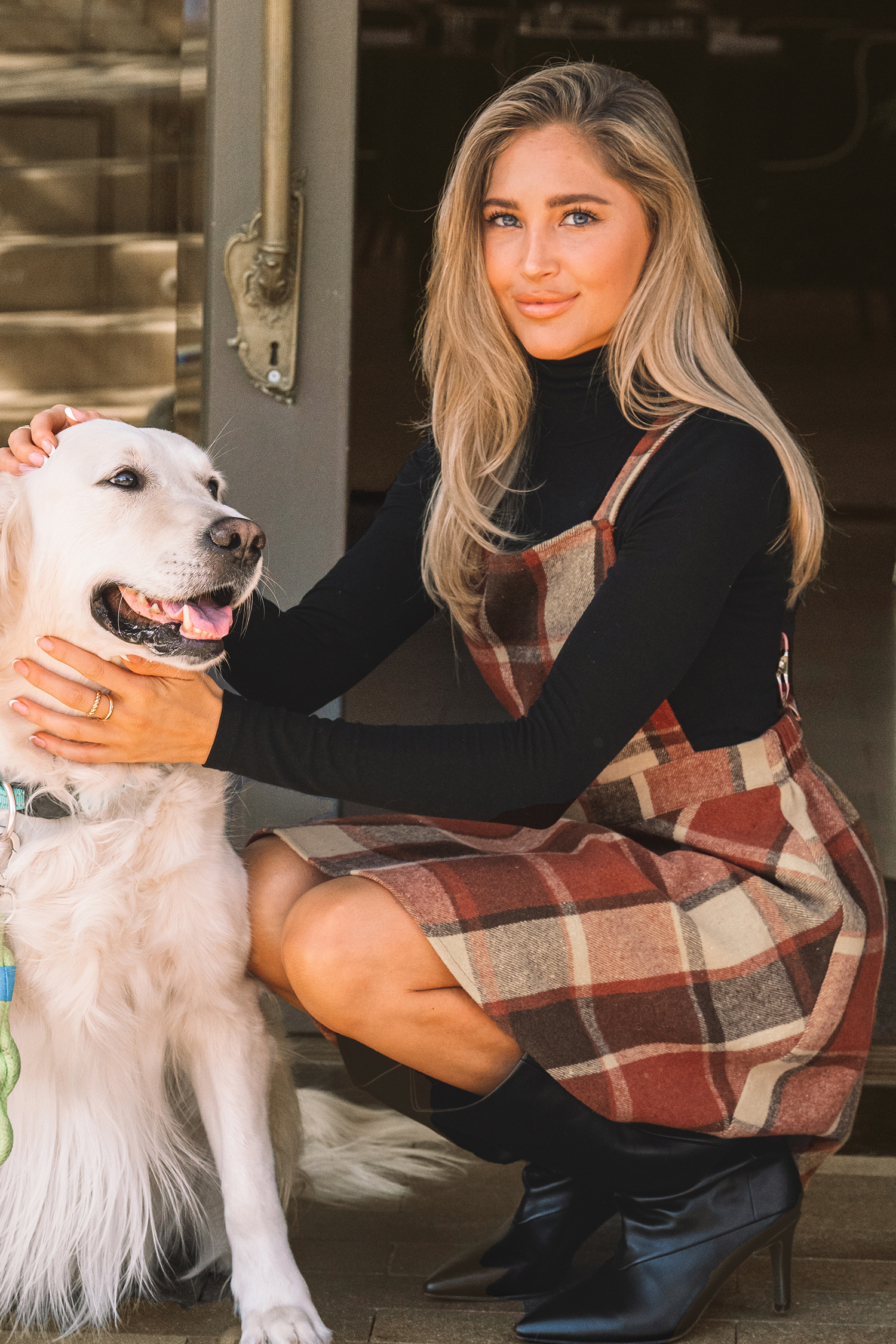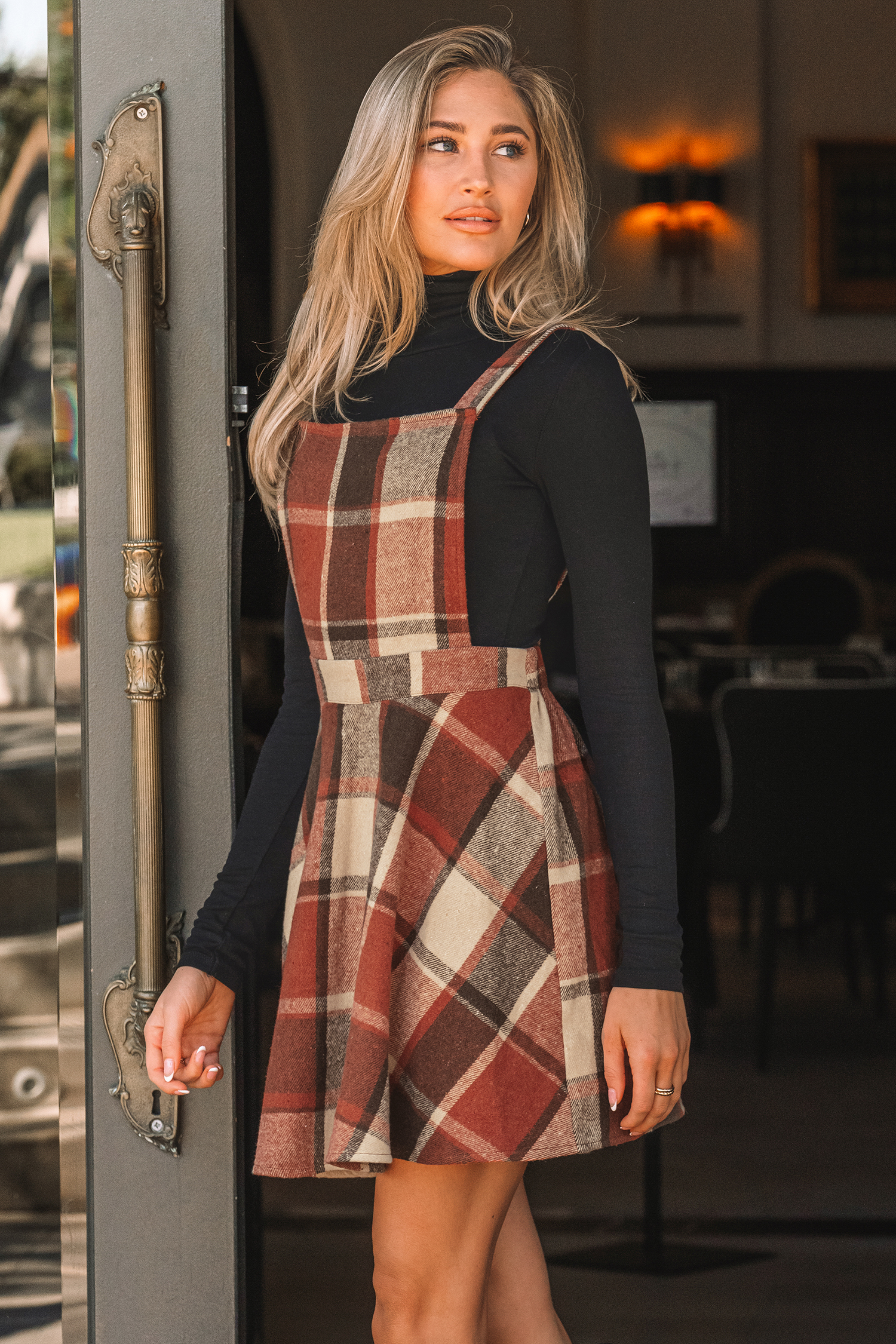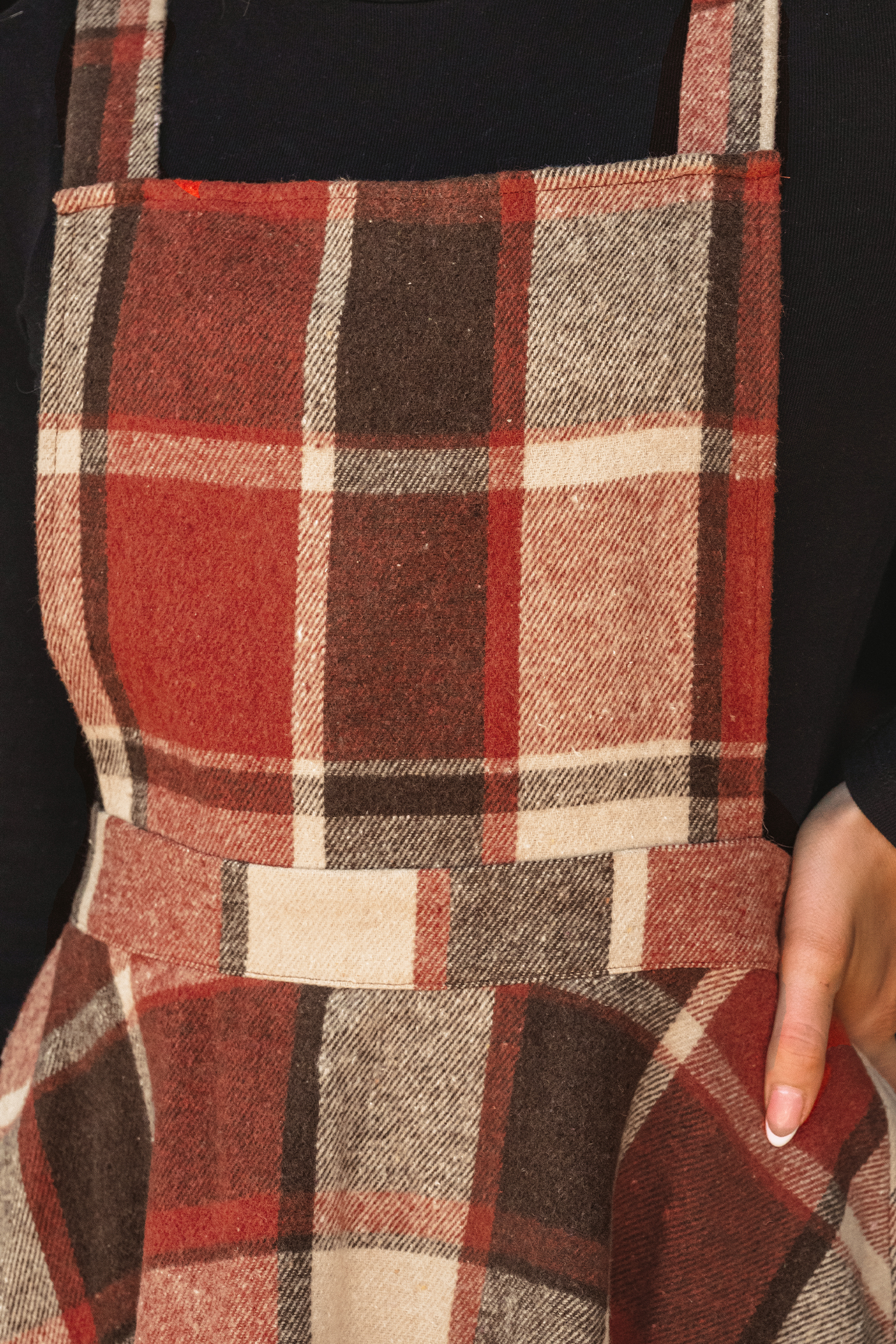 Burnt Orange Plaid Square Neck Mini Pinafore Dress