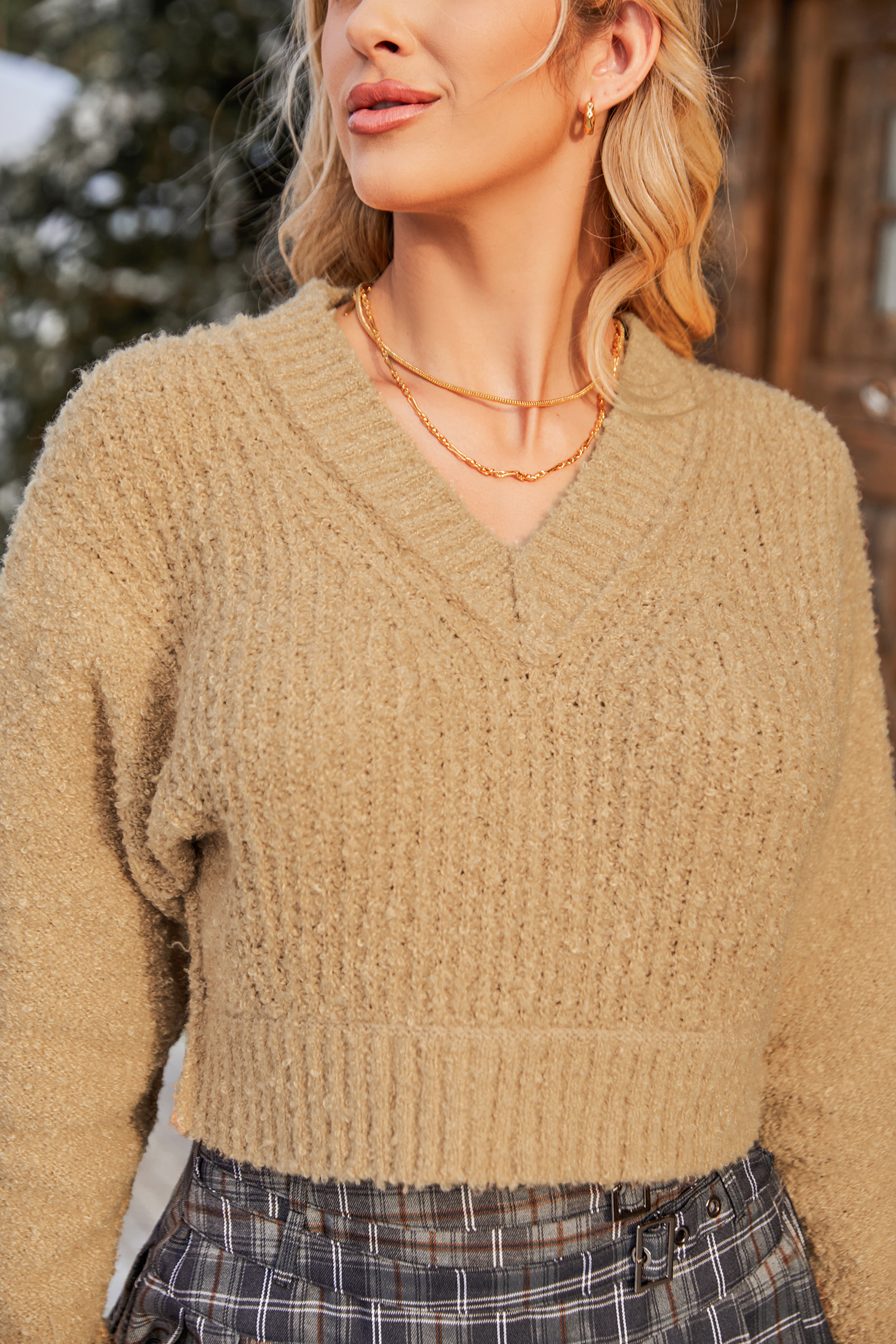 HomeCamel Knit Long Sleeve Cropped Sweater Top