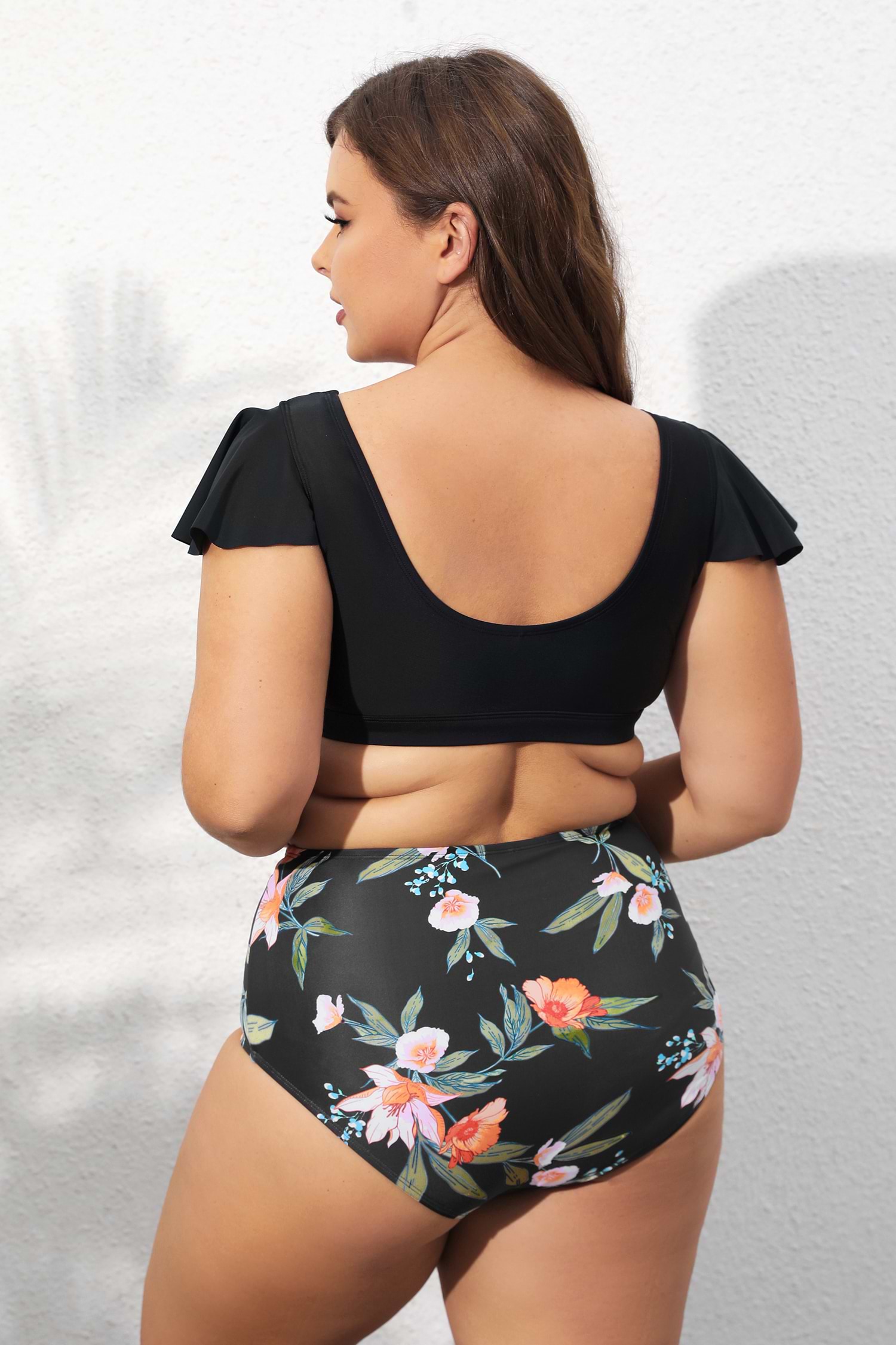 Cap Sleeve Top & High Waist Plus Size Bikini Set