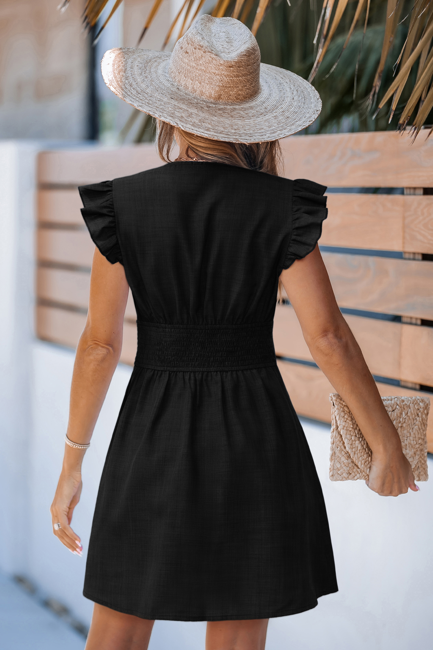 The Daydream Drive Black Mini Dress captures carefree vibes with a playful edge! Sleeveless with ruffled trim and a flirty mini length, it’s ready for sunkissed adventures.