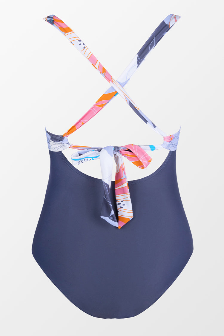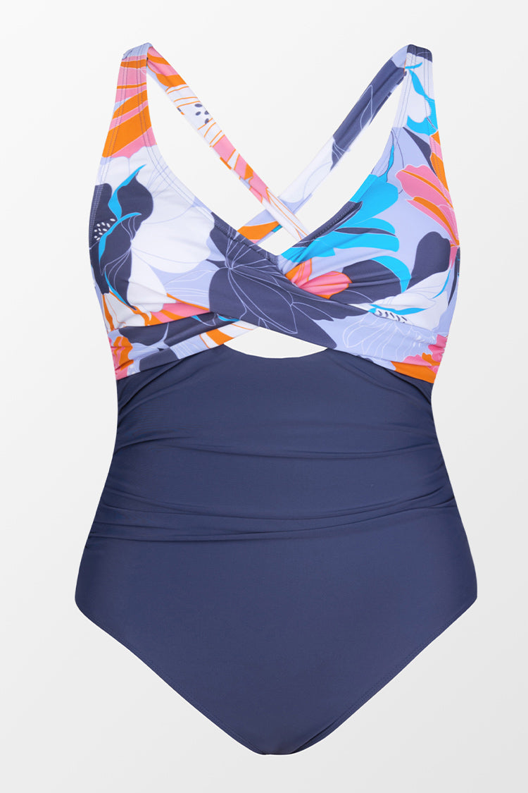 Deep Ocean Molded Twist Front Tummy Control Plus Size One Piece