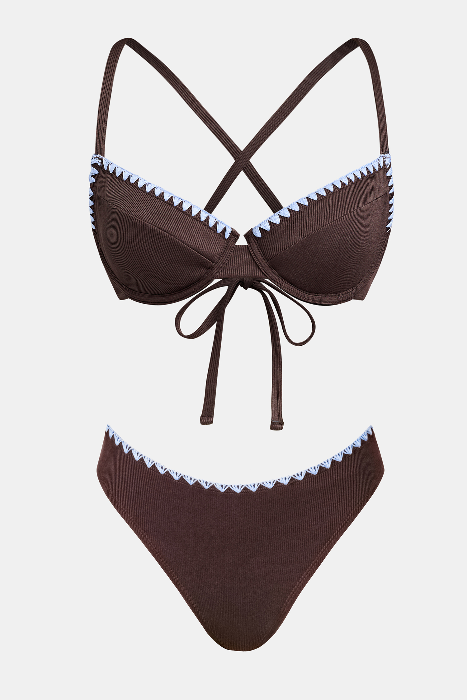 The Dolce Vita Bikini Set captures the essence of laid-back luxury! Featuring a chic diamond neckline and crossback straps, it combines high bust support with a comfortable mid-rise fit. The high-cut leg and cheeky bum coverage offer a flattering silhouette, perfect for stylish beach days.