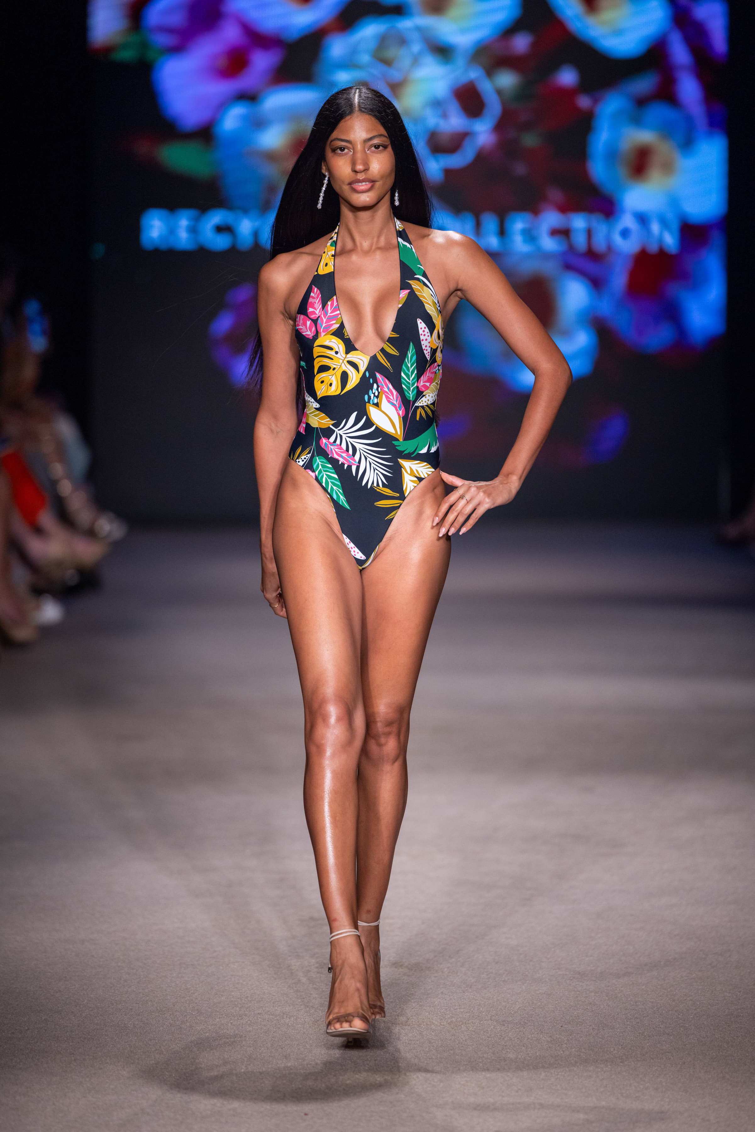 Recycled Escaping Reversible Plunging Halter One-Piece