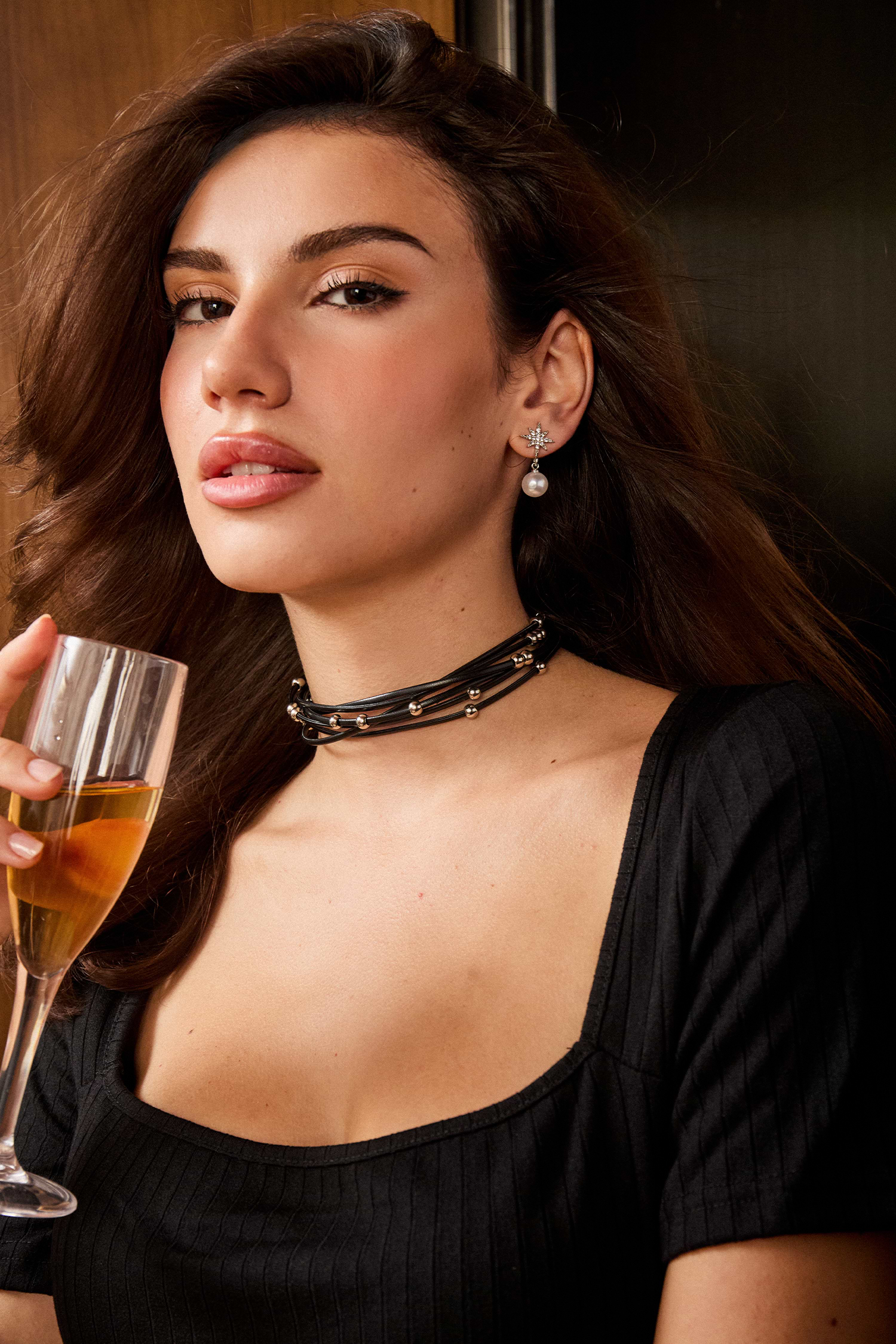 HomeFaux Leather Silver-Tone Bead Wrap Choker