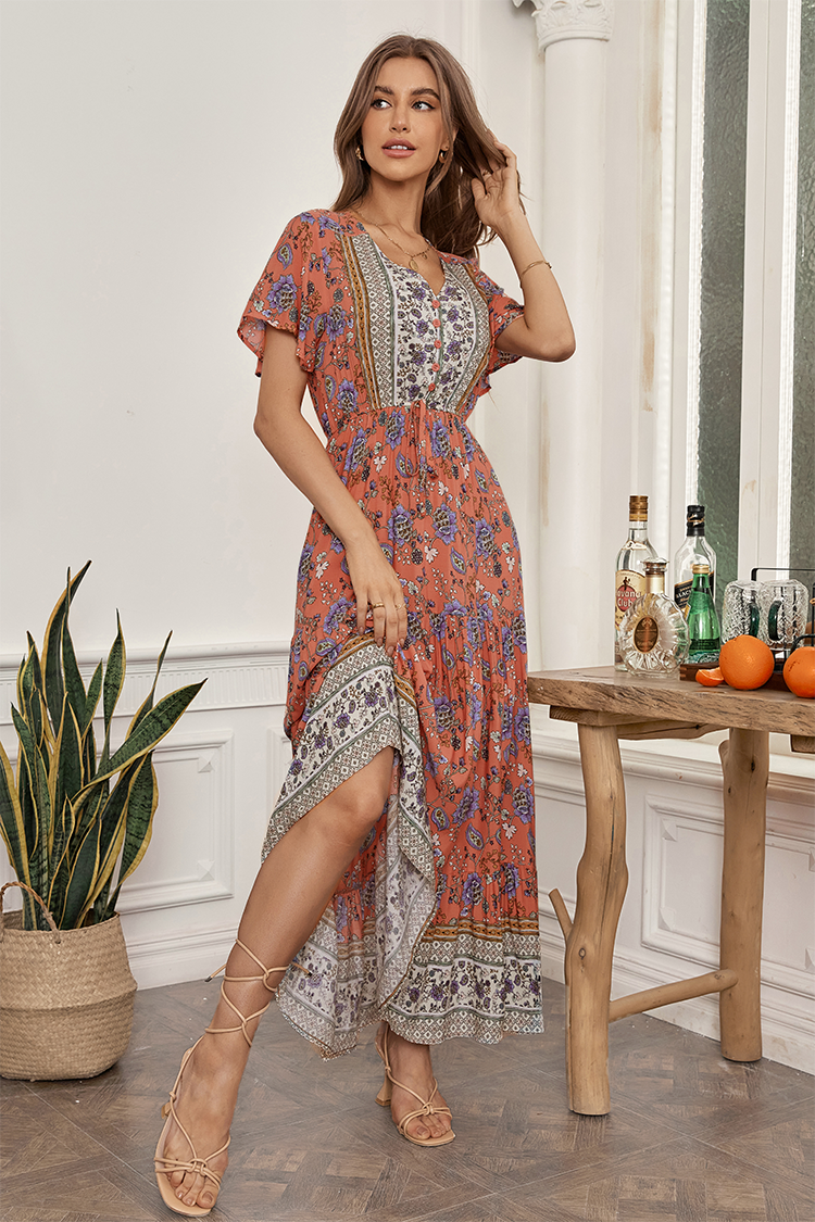 HomeGalilea V-neck Boho Tie A-Shape Dress