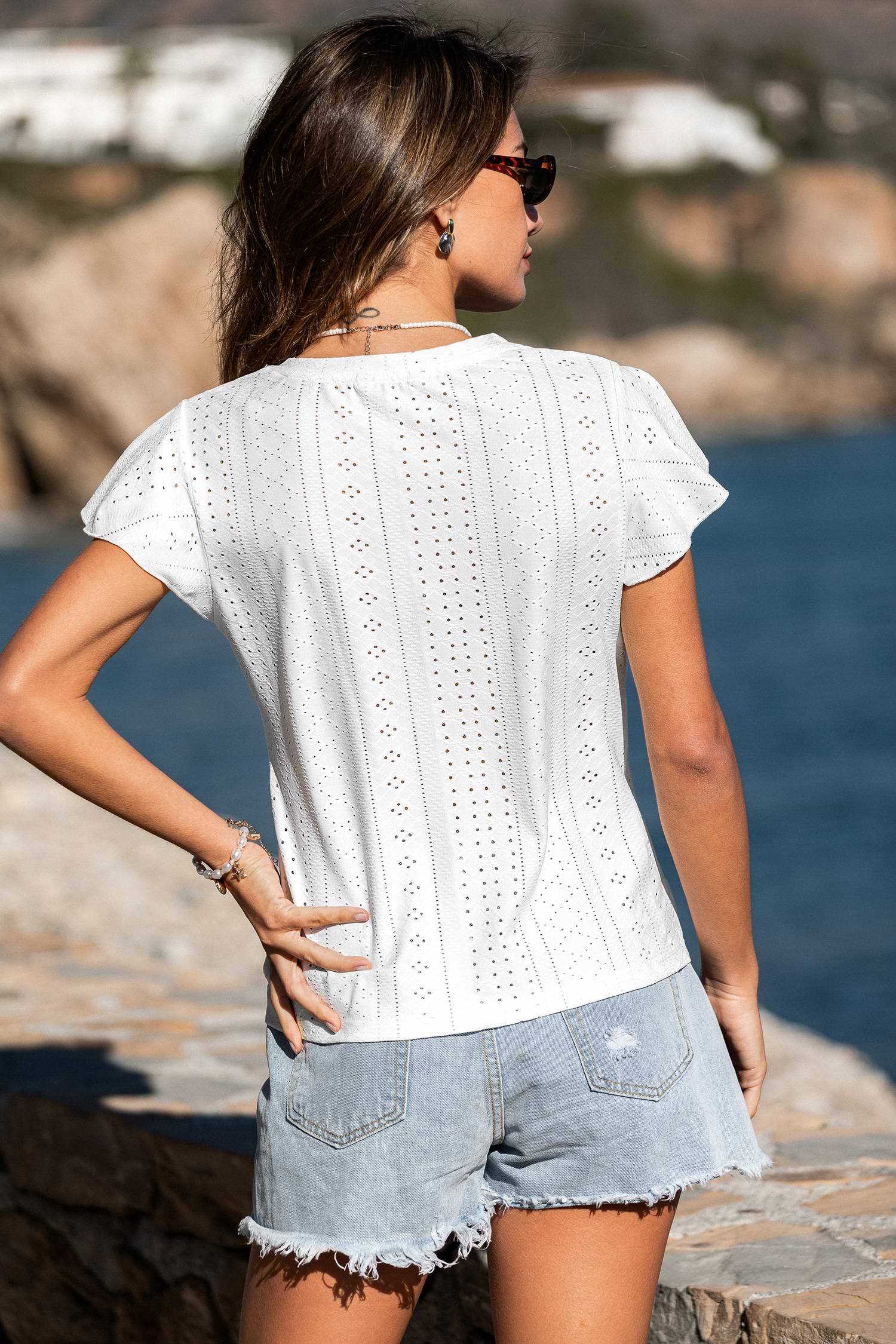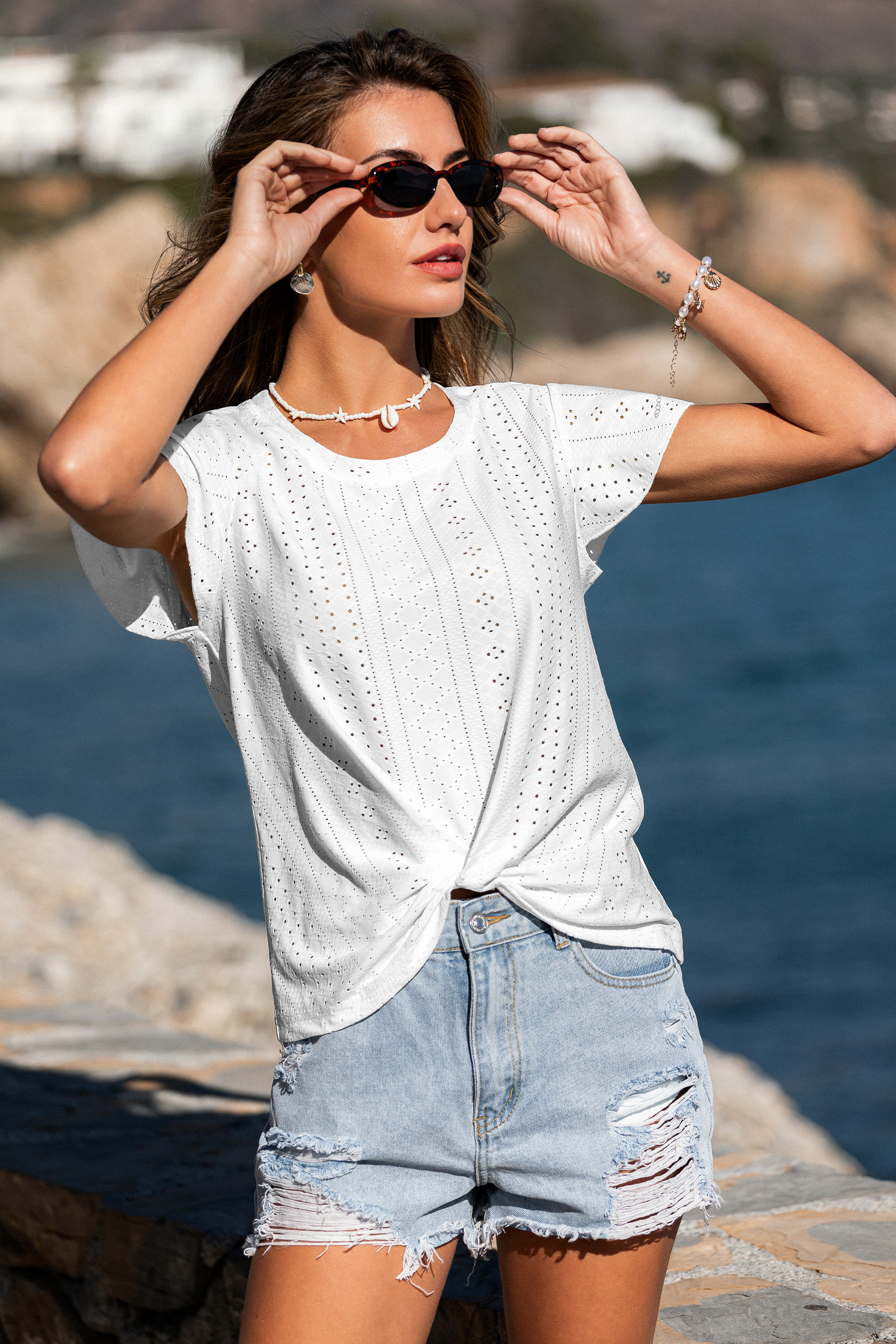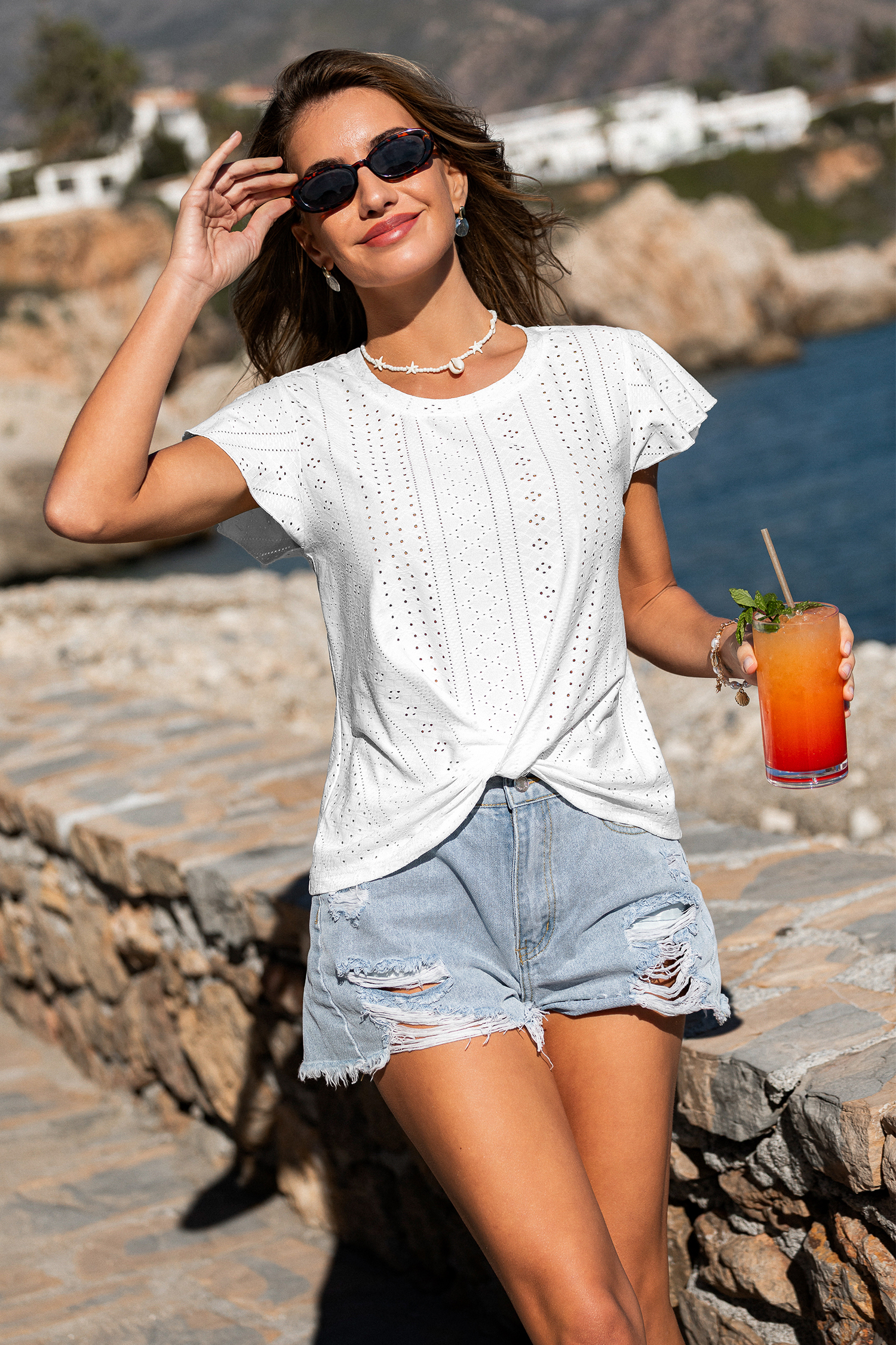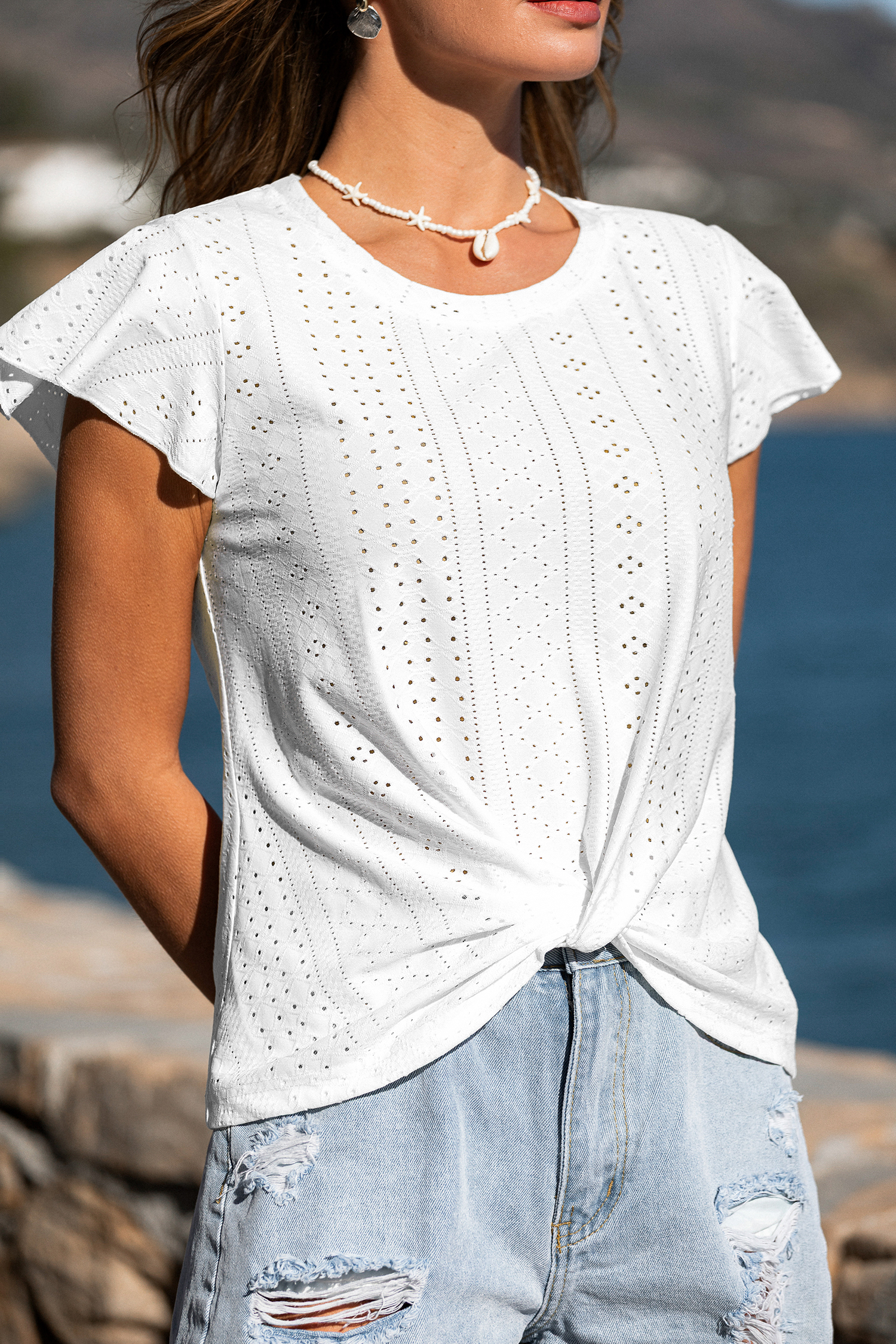 The Gentle Reminder White Top feels soft and easy with a sweet, feminine touch! A classic round neckline pairs with flutter sleeves and a knotted detail for a look that’s simple yet charming.