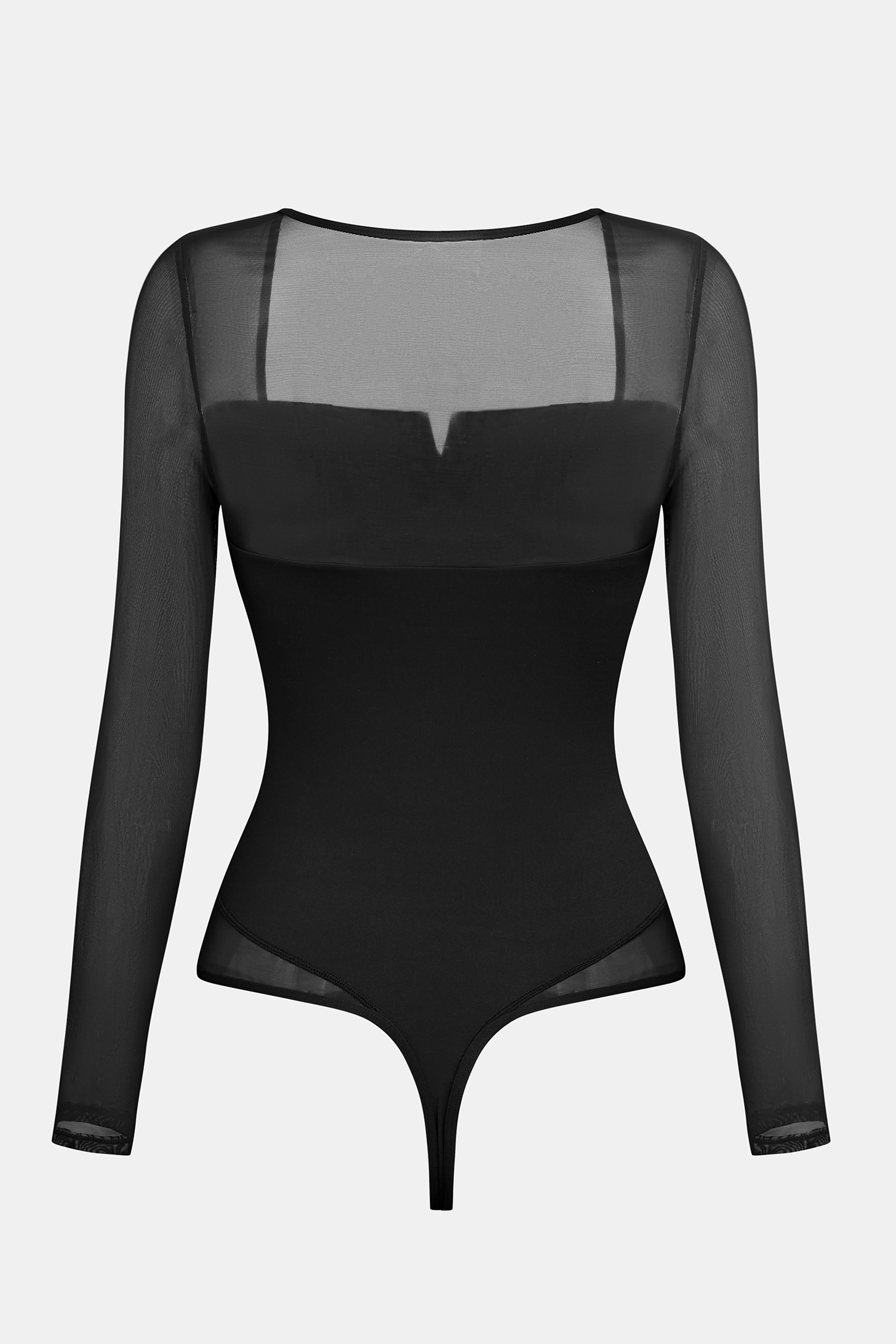 The Good Lighting Black Shapewear Bodysuit gives you a smooth, confident look! The sheer long sleeves add intrigue, while abdominal support and light compression help create a clean, streamlined fit.