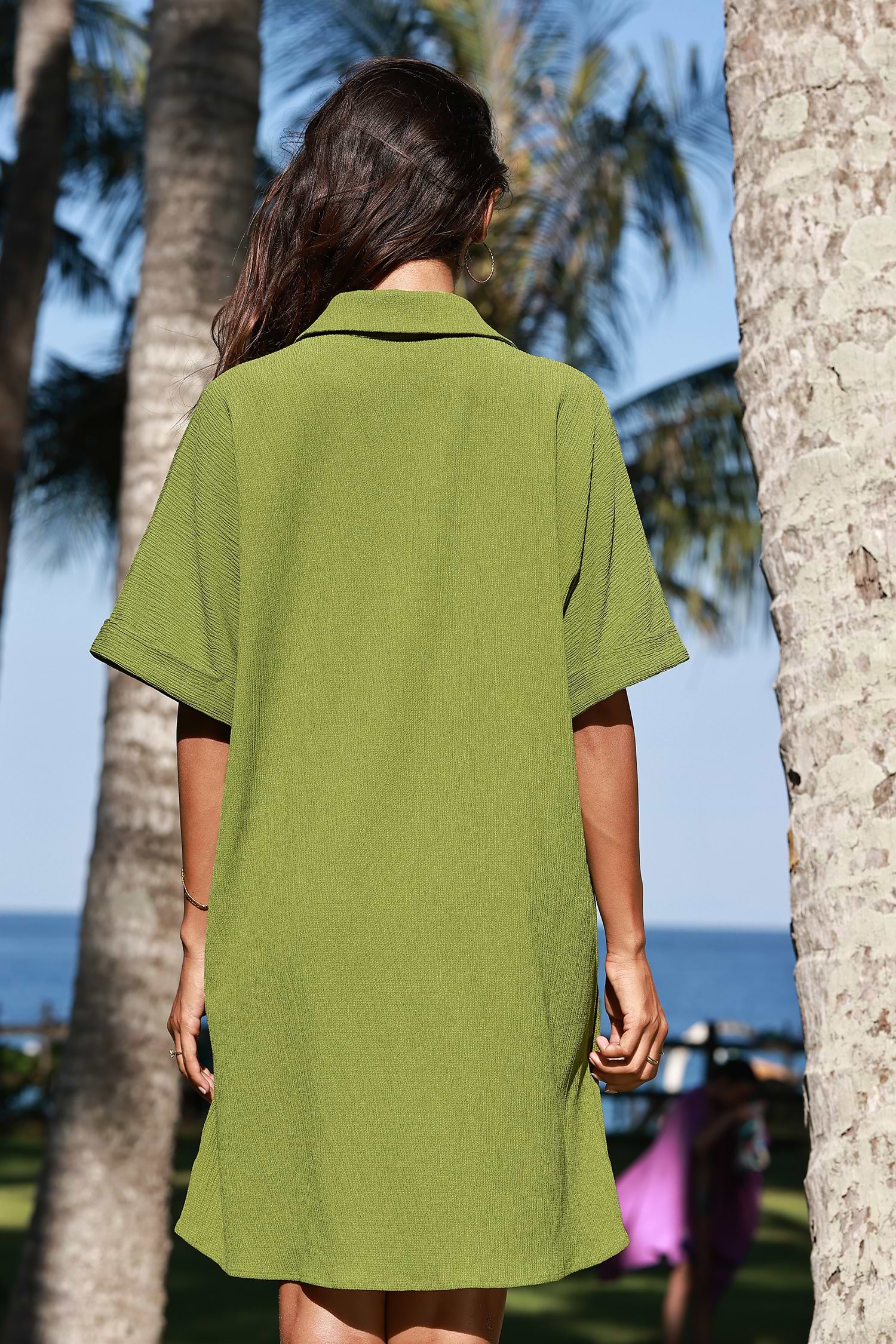 HomeGreen Collared Front Button Loose Fit Mini Dress