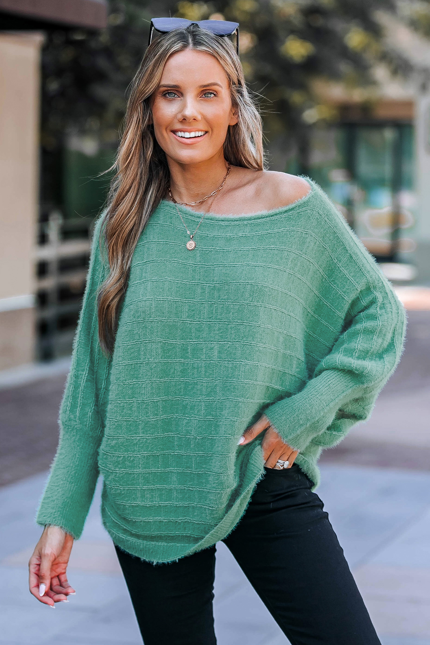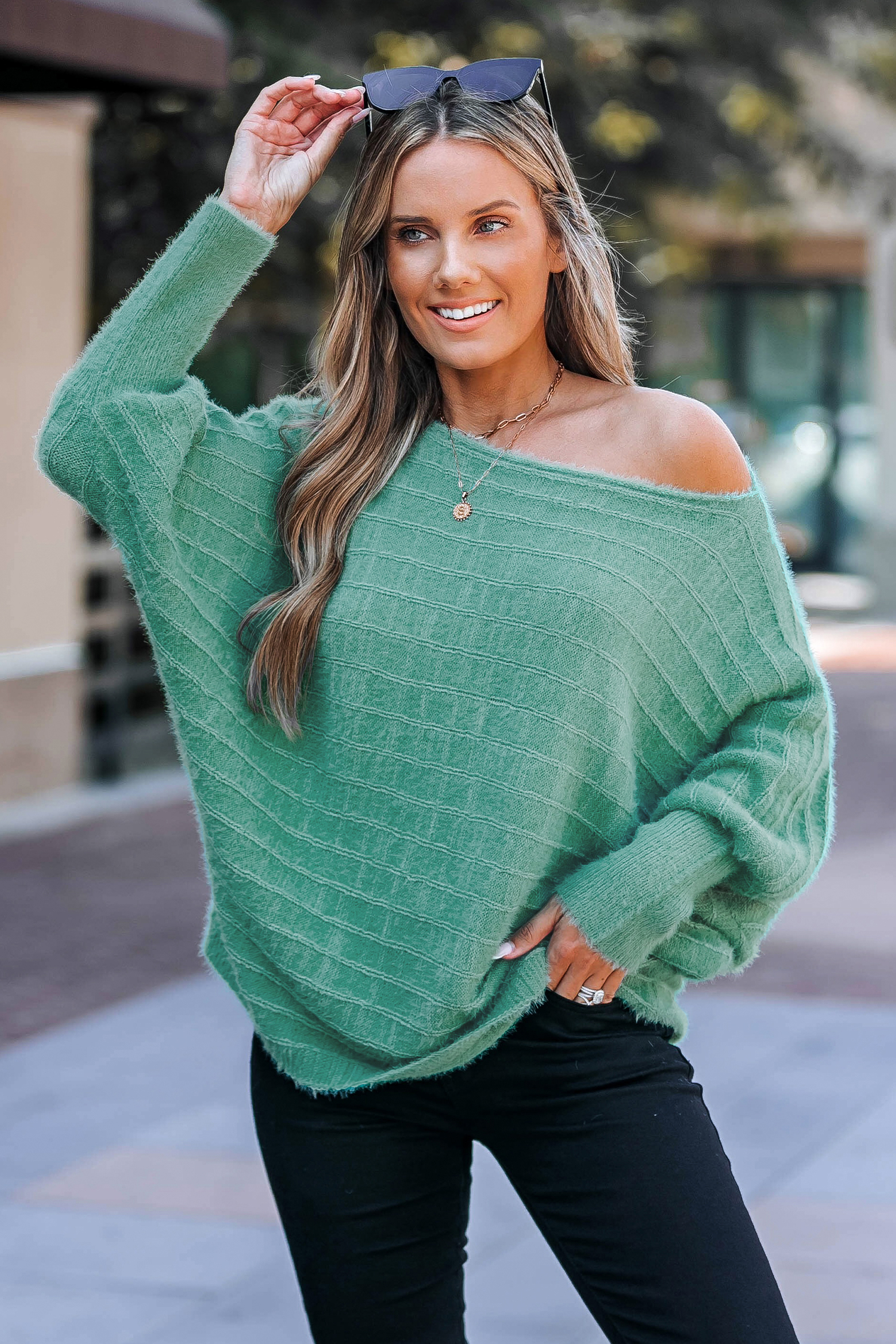 HomeGreen Off-Shoulder Puff Sleeve Sweater