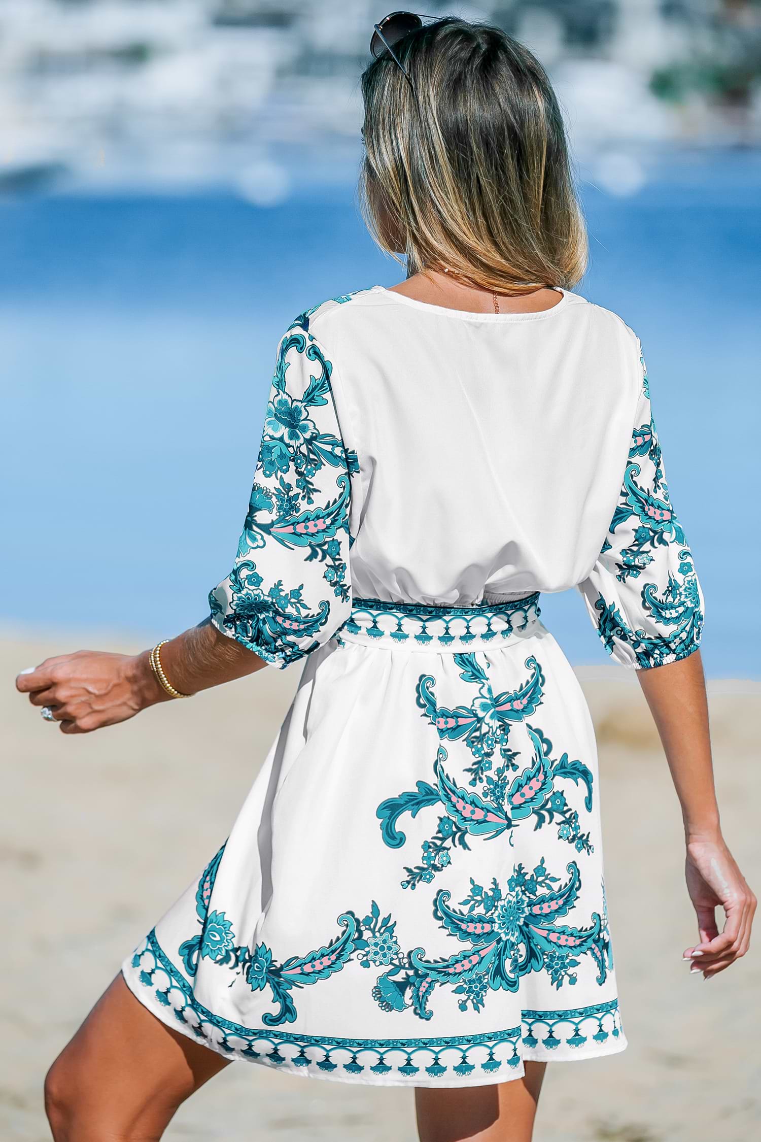 HomeGreen Paisley V-Neck Puff Sleeve Mini Dress