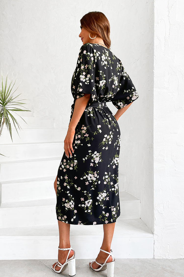 Hayden Flared Sleeve Belted Floral Dress
