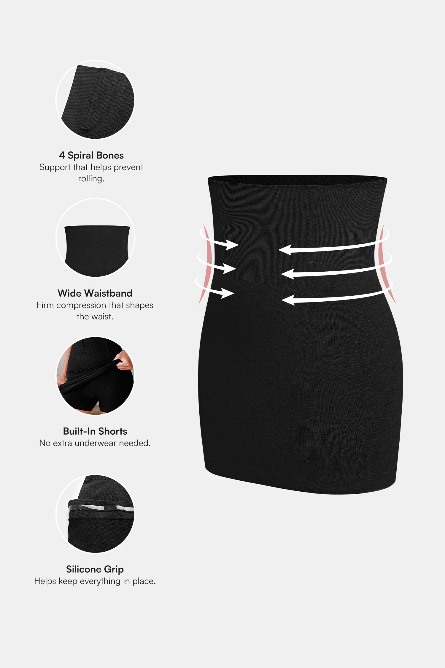The Hush Hush Black Shapewear Skirt keeps things smooth, sleek, and totally under-the-radar! A high-waisted fit with abdominal support and medium compression makes it perfect for layering under your favorite pieces with confidence.