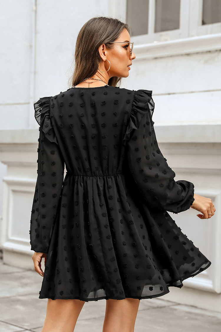 Long Sleeve Clip Dot Ruffled Mini Dress