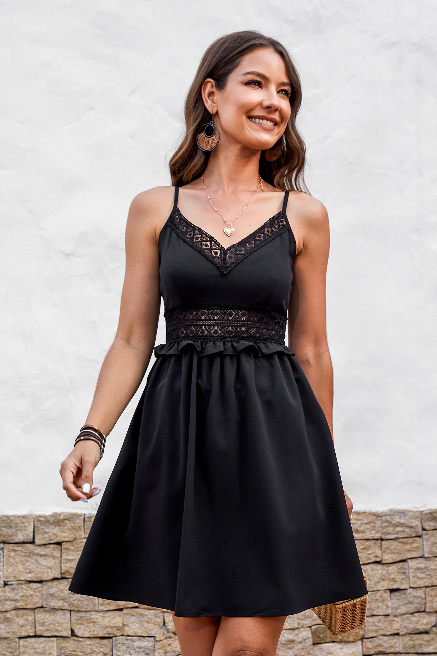 HomeIsland Sun Lace Trims Slip A-shape Dress