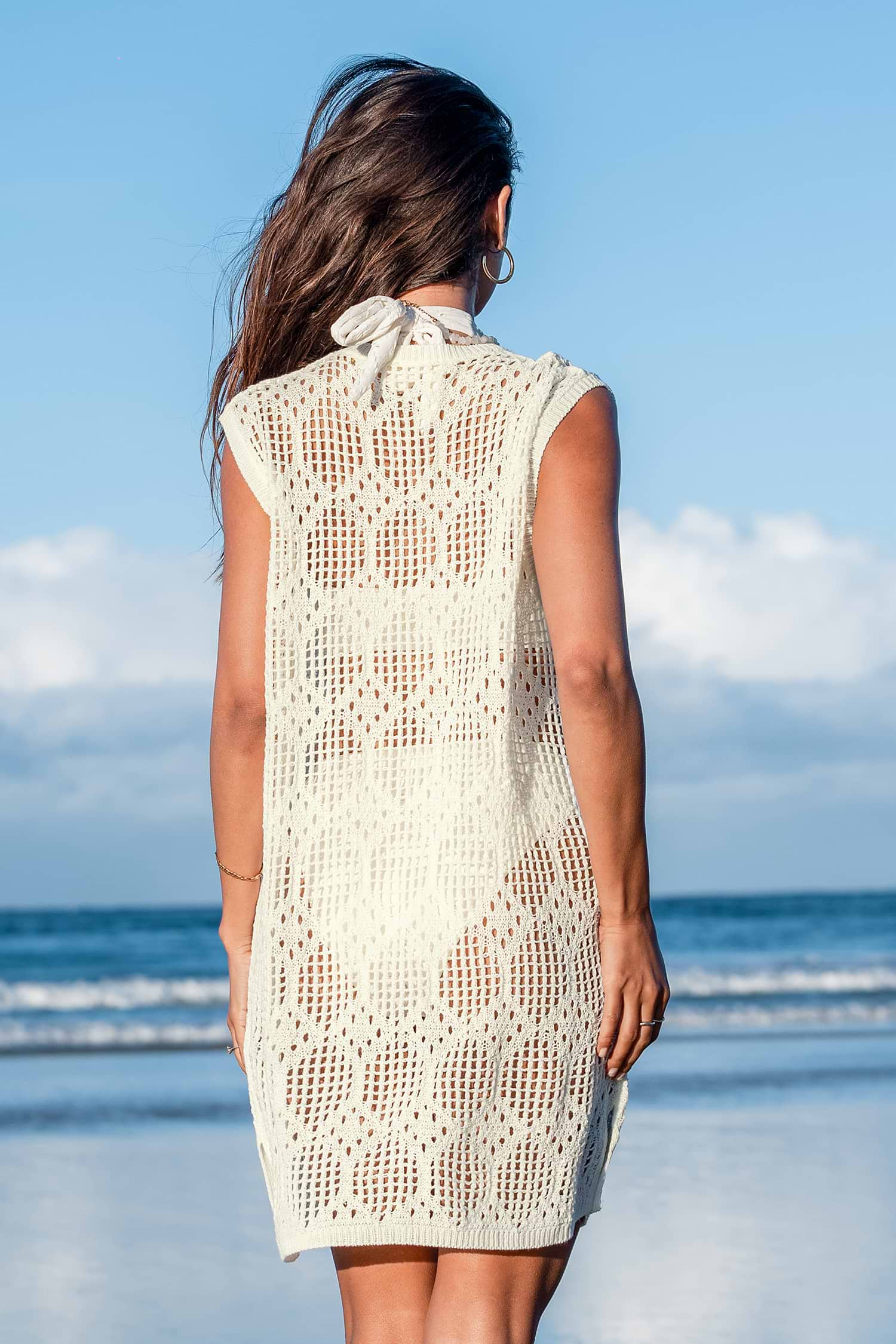 Ivory Open Knit Sleeveless Mini Cover-Up