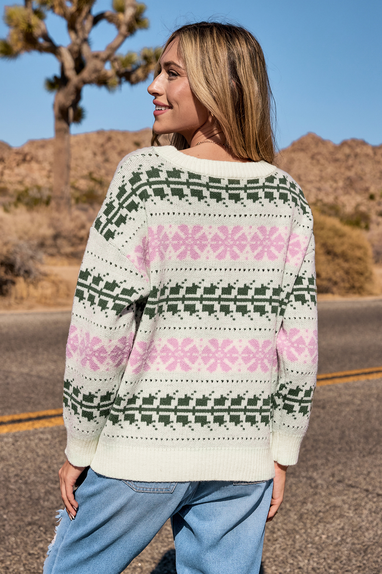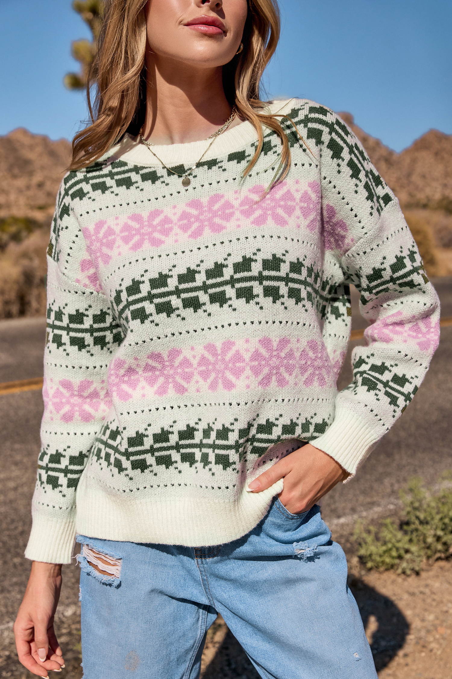 Ivory Snowflake Round Neck Long Sleeve Sweater