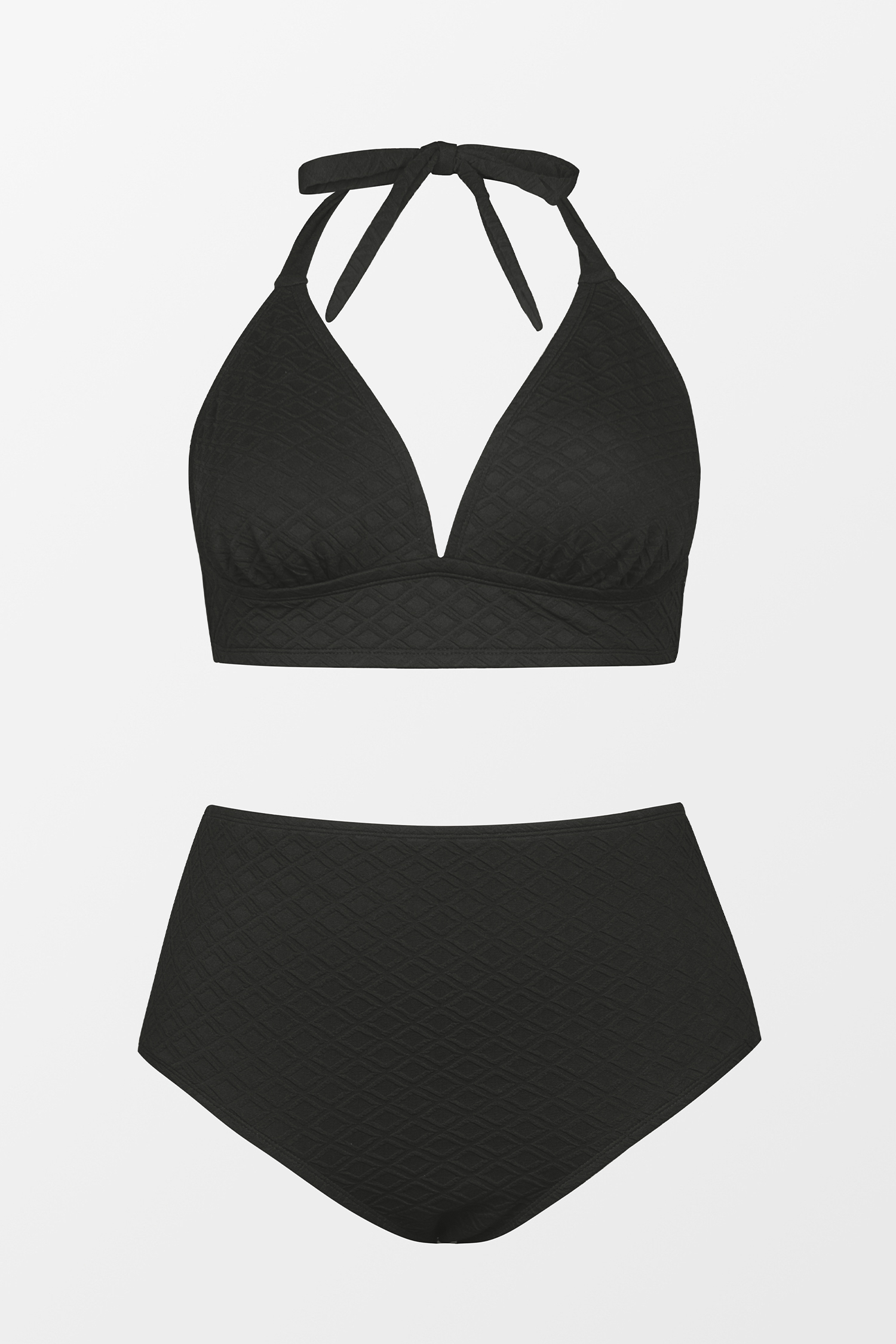 Jacquard Halter Triangle & Retro High Waist Bikini Set