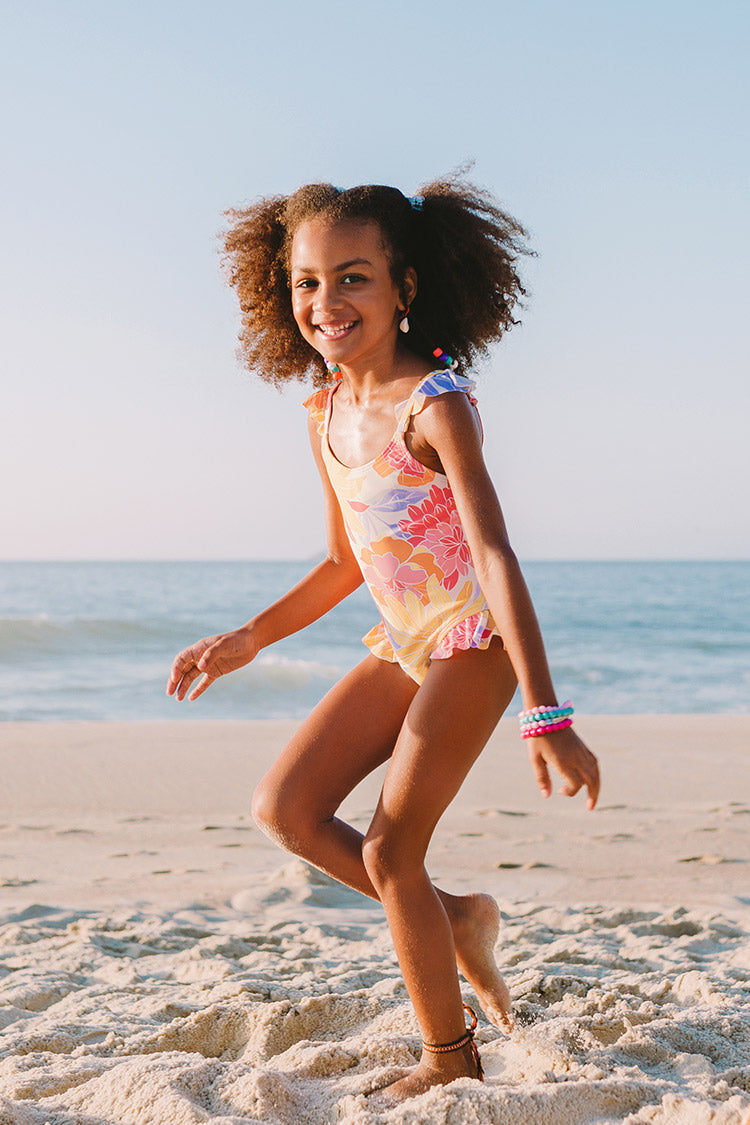 Joyful Garden Girls’ Ruffled Strap One Piece Swimsuit