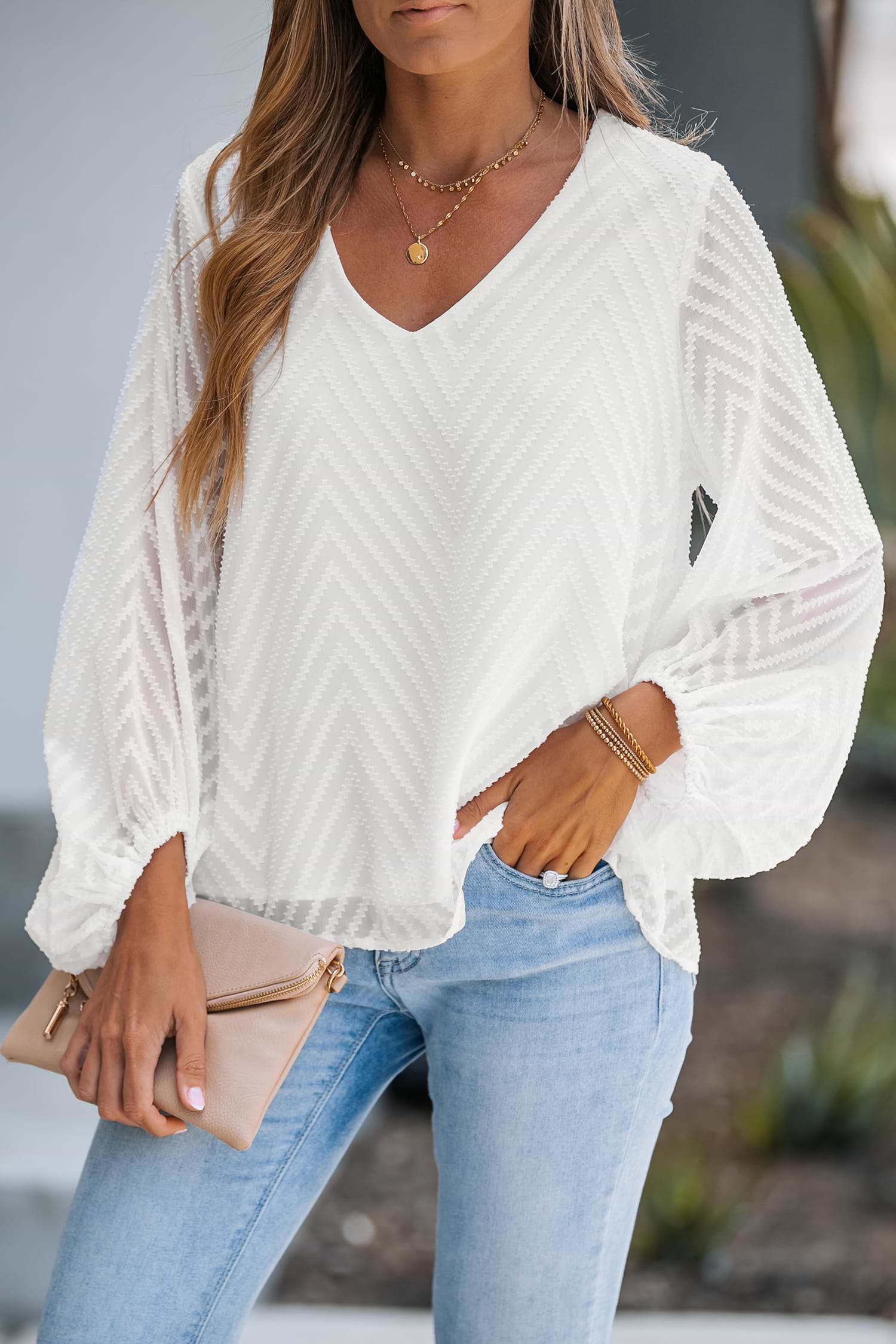 HomeLong Sleeve Ruching V-neck Top