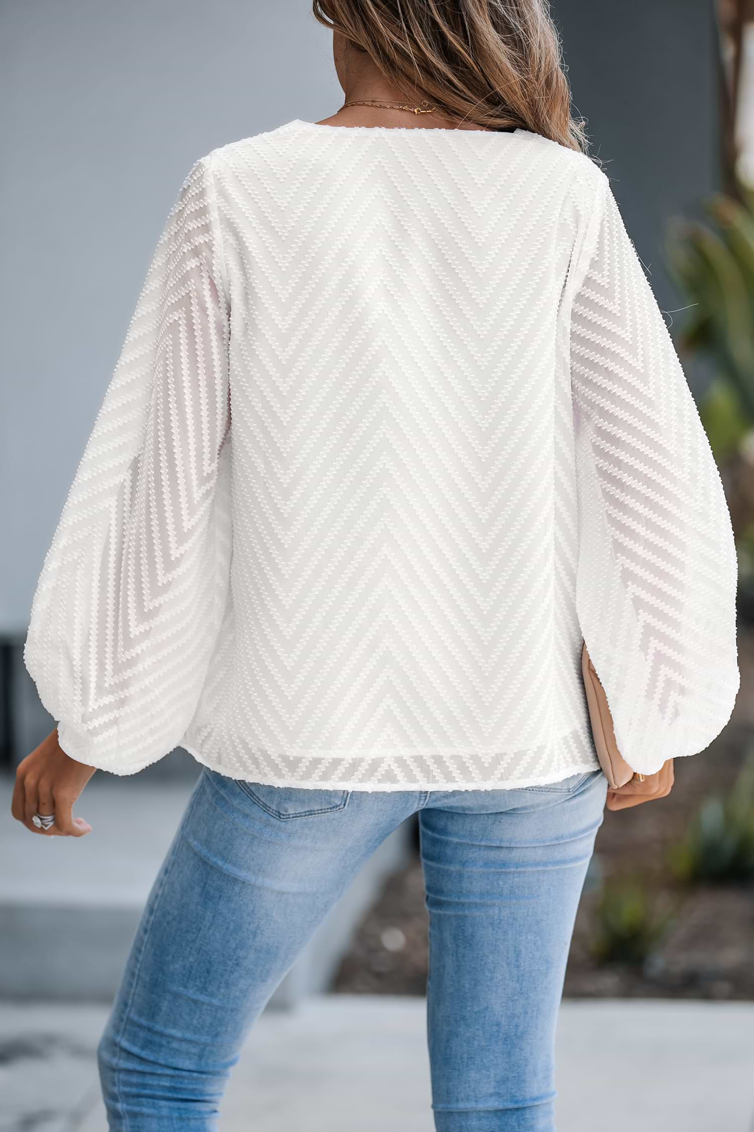 Long Sleeve Ruching V-neck Top