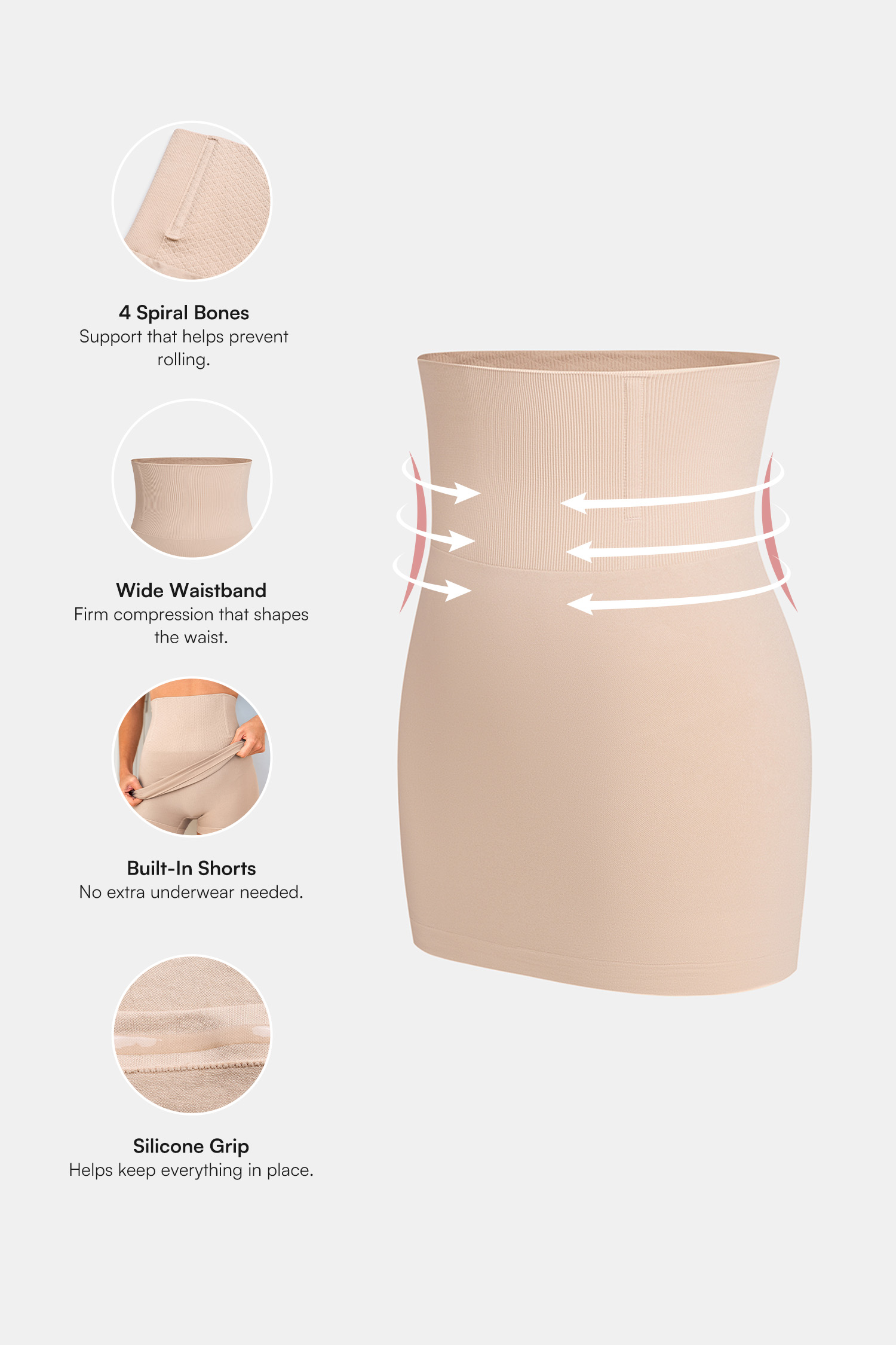 The Keep It Snatched Nude Shapewear Skirt smooths and shapes while keeping the vibe confident! A high-waisted cut with abdominal support and medium compression makes it perfect for layering under your favorite minis.