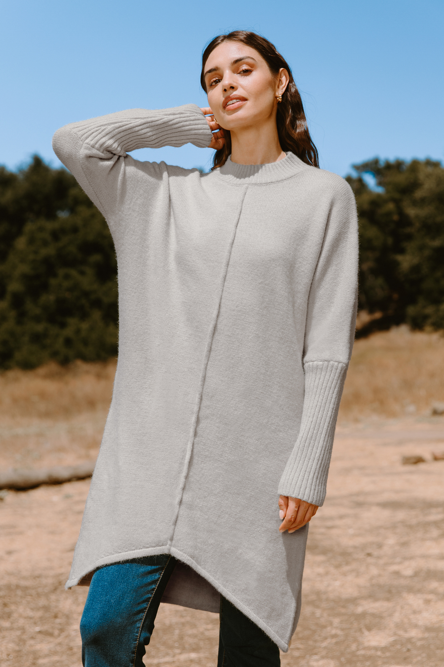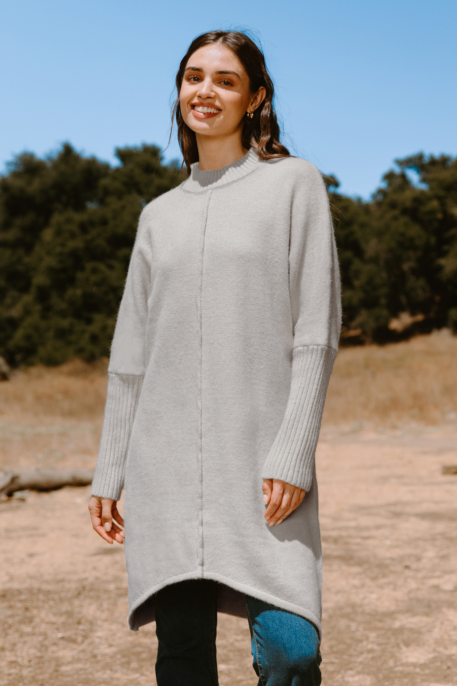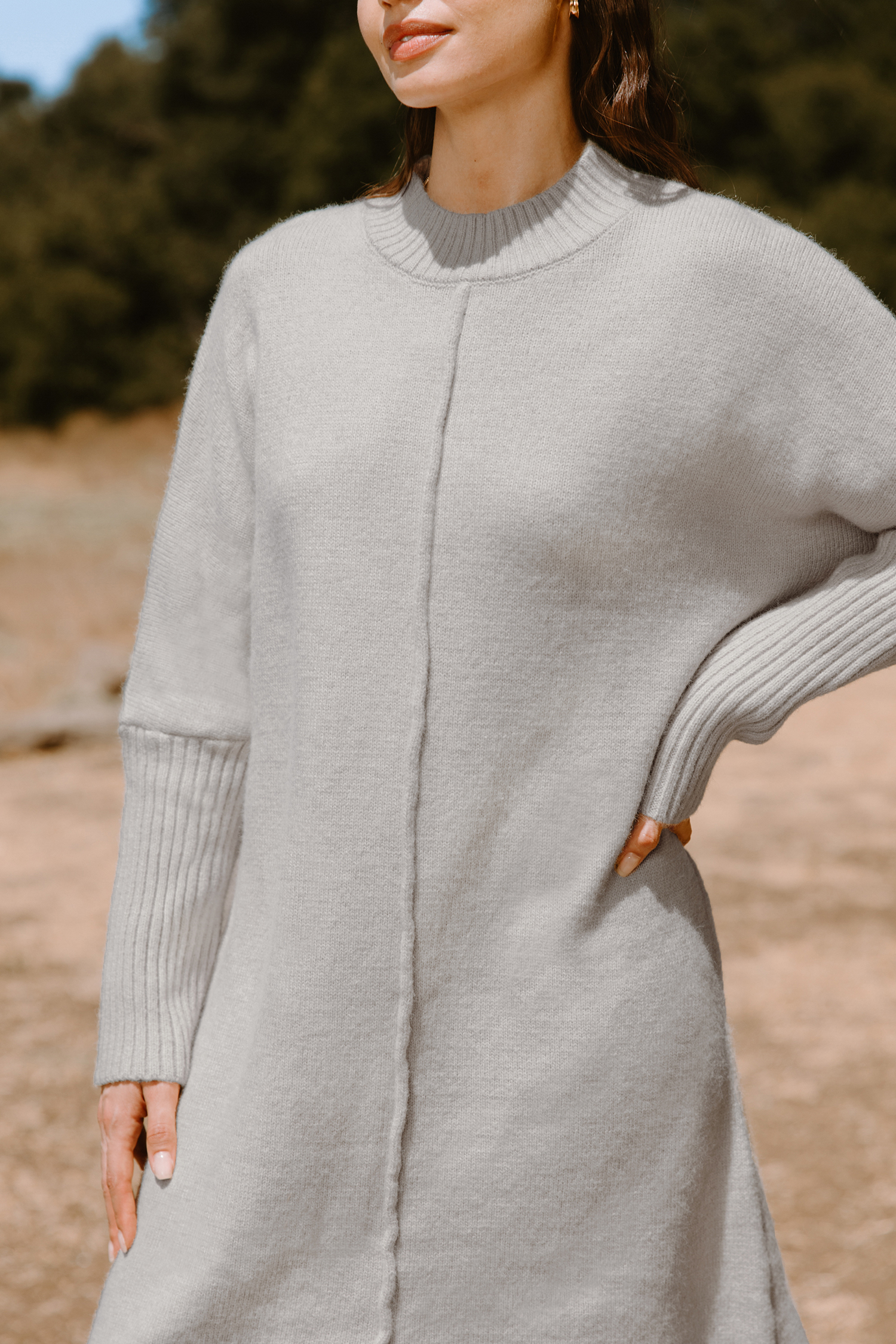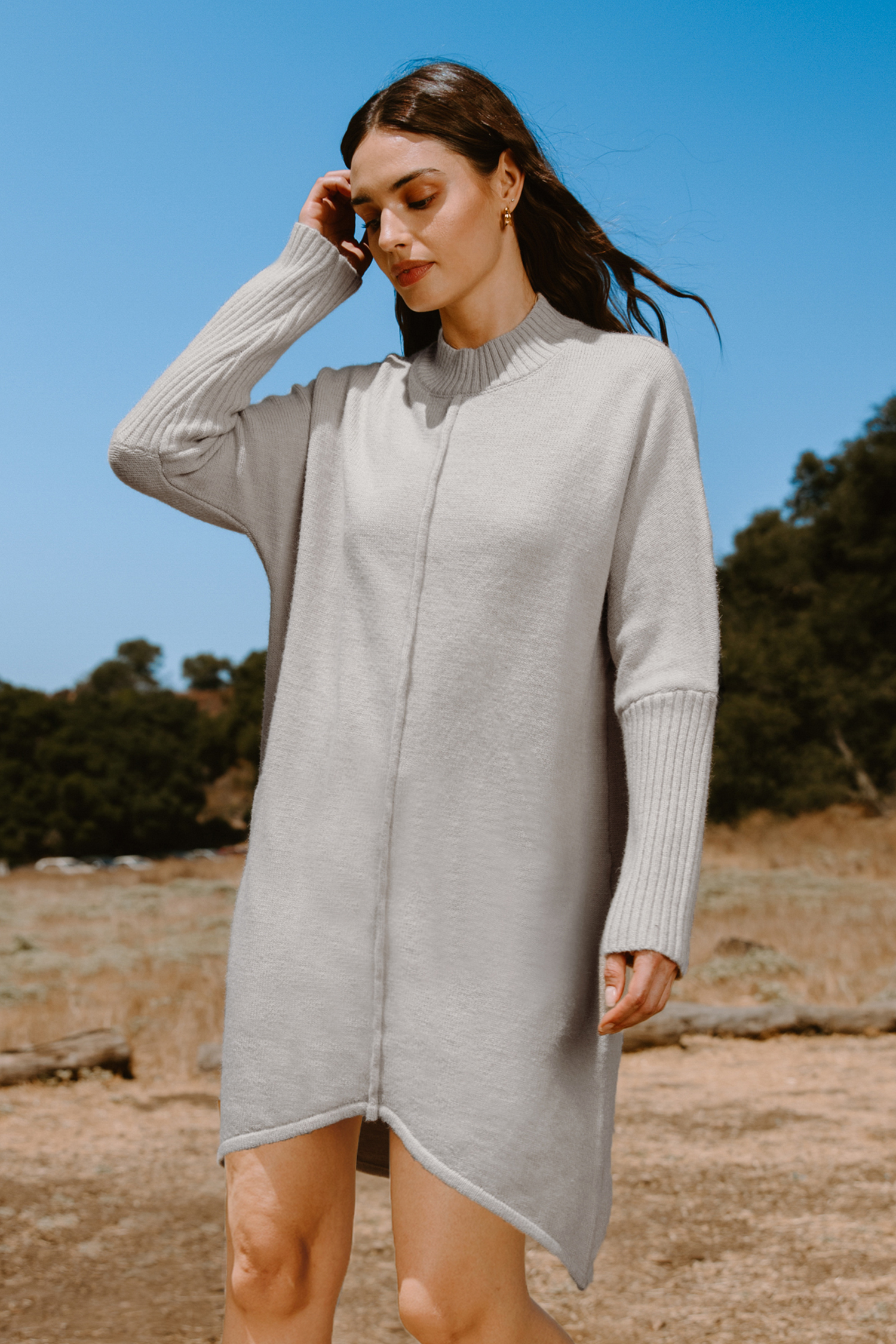 HomeKhaki Mockneck Long Sleeve Mini Sweater Dress
