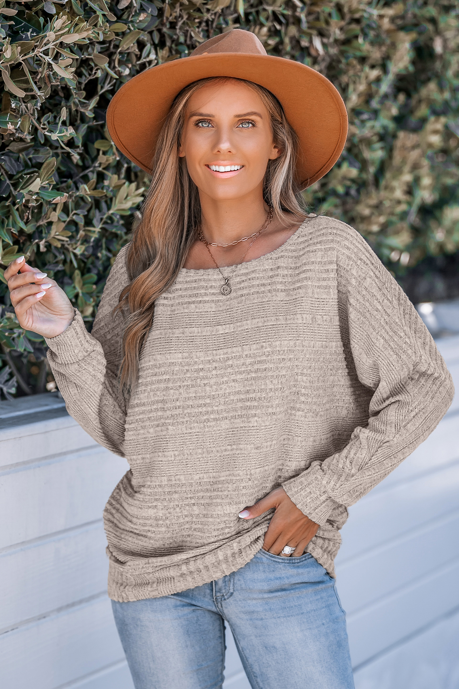 HomeRib Knit Round Neck Long Sleeve Sweater