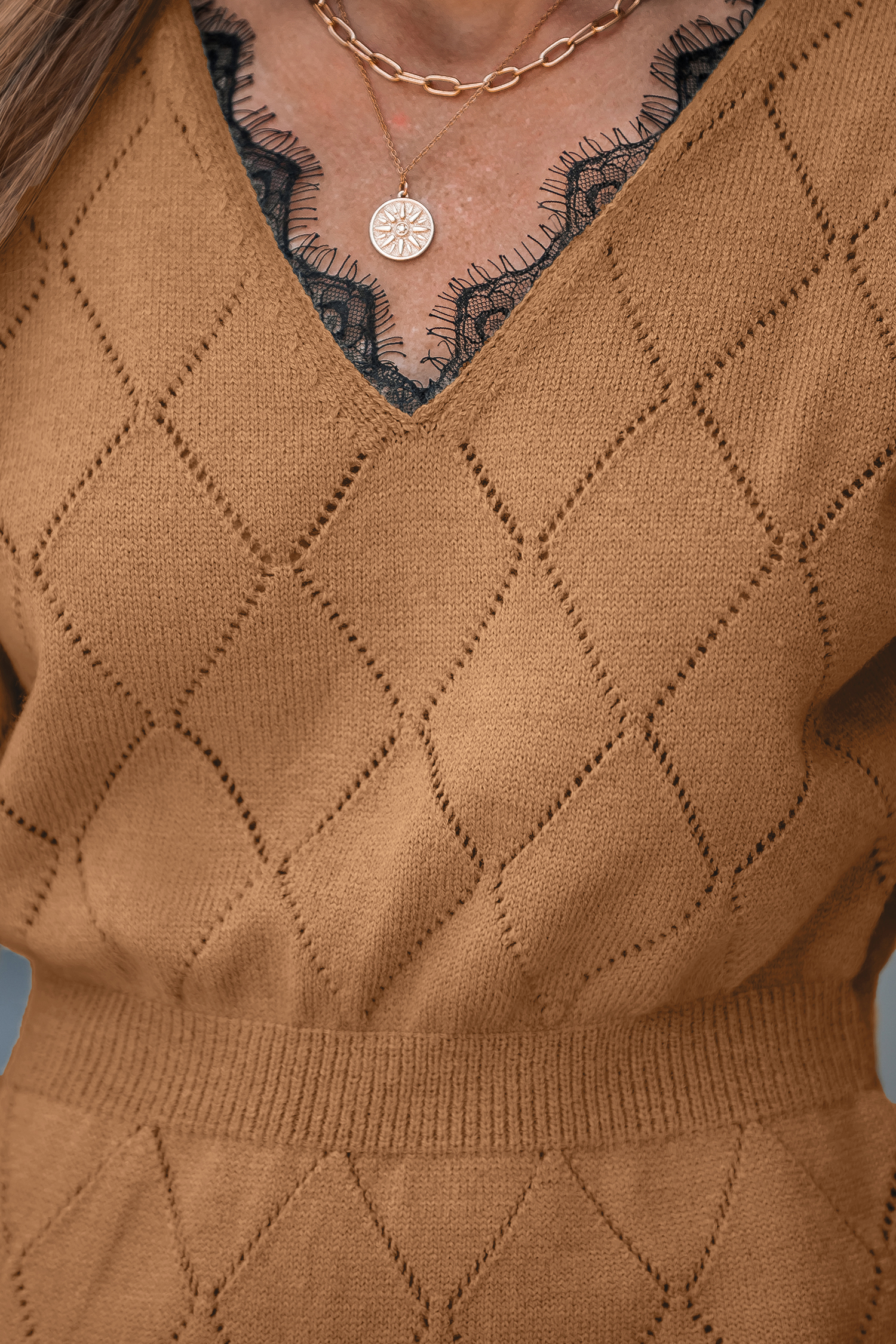 Lace Diamond-Stitched Sweater Dress