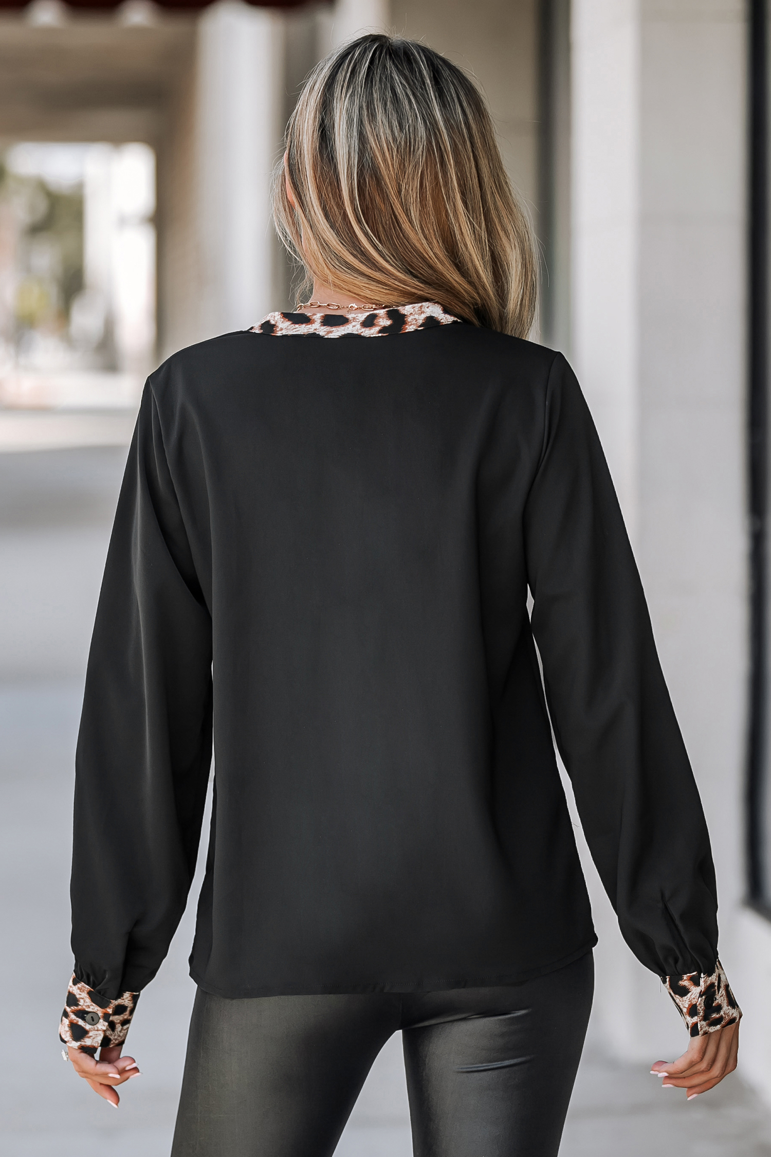 Leopard Print Trim V-Neck Top