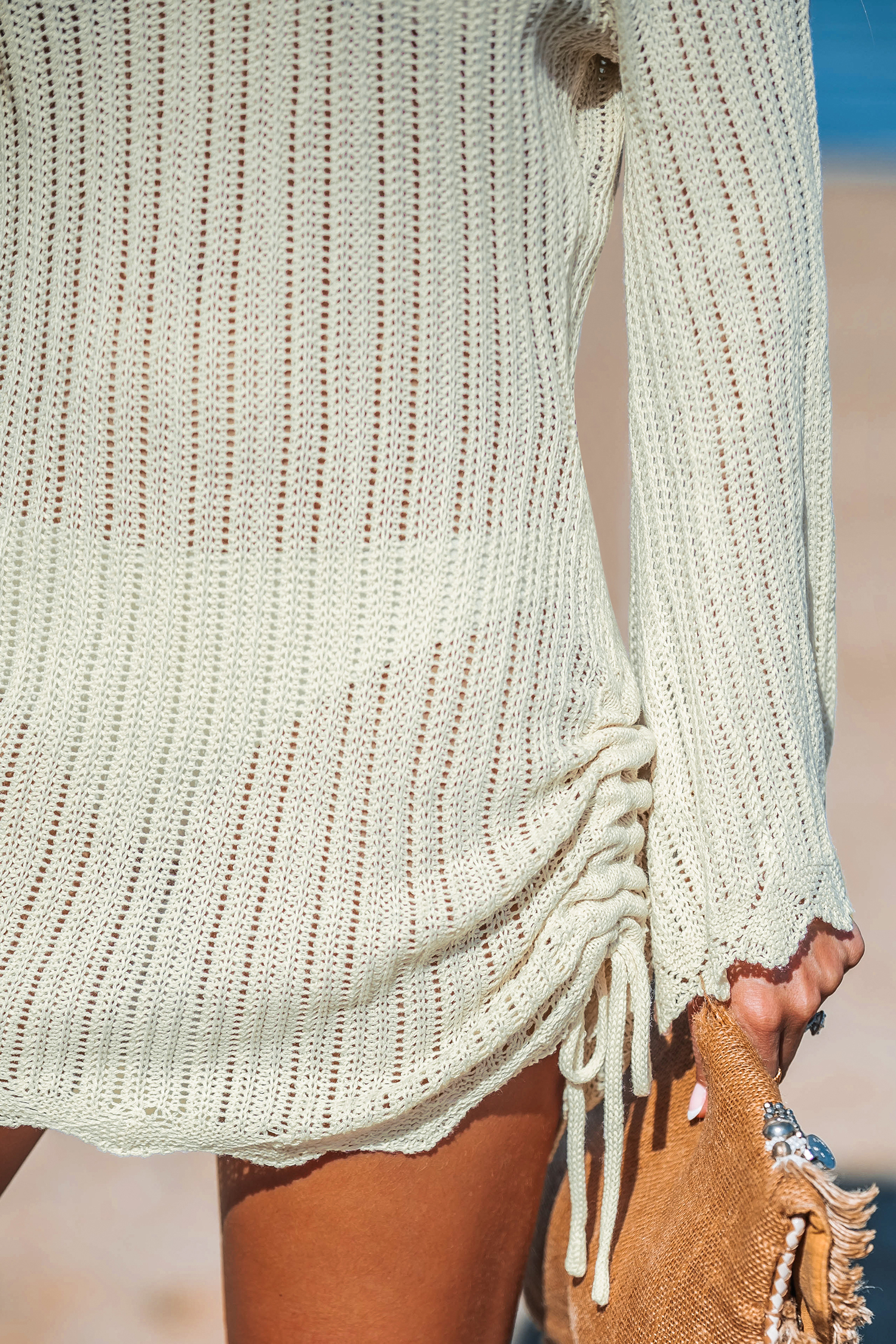 Show off your summer style in the Light Yellow Off-Shoulder Bell Sleeve Cover-Up Mini Dress! With long bell sleeves and ruched side ties, this mini dress is the perfect balance of relaxed and flirty.