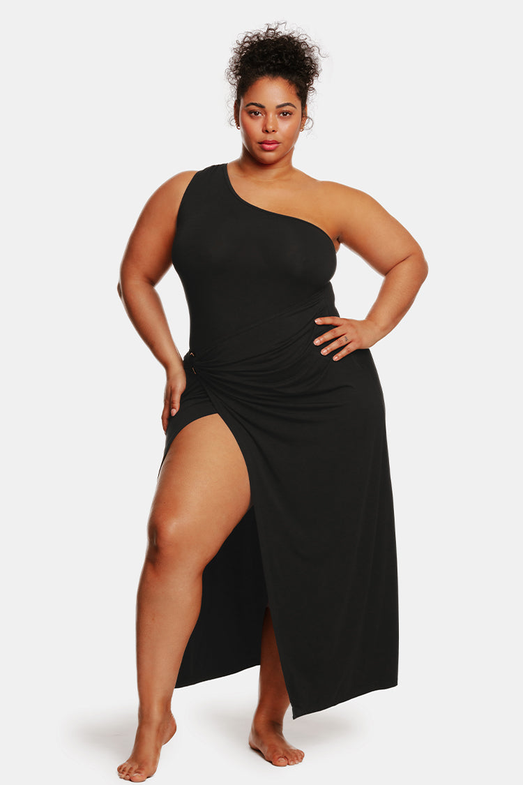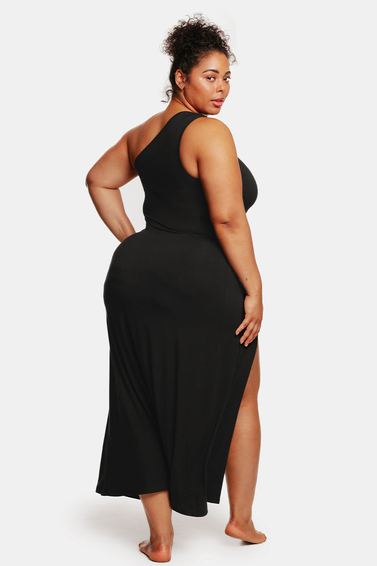 HomeLove Los Angeles One Shoulder Slit Plus Size Maxi Dress
