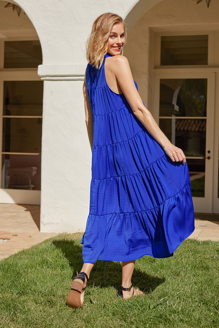 Mermaid Beach Blue Elastic Waist A-Shape Dress