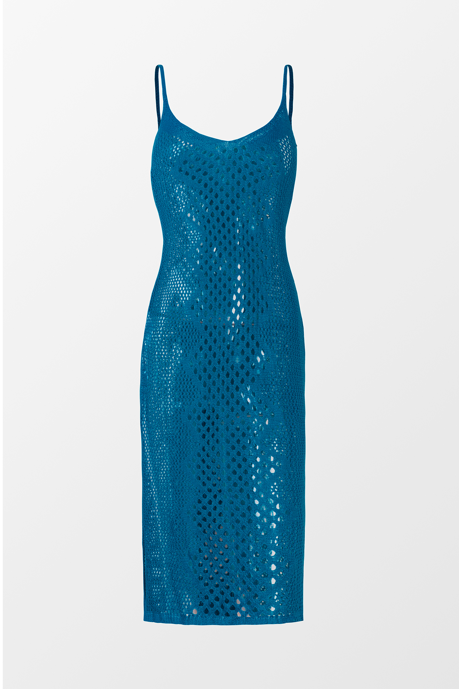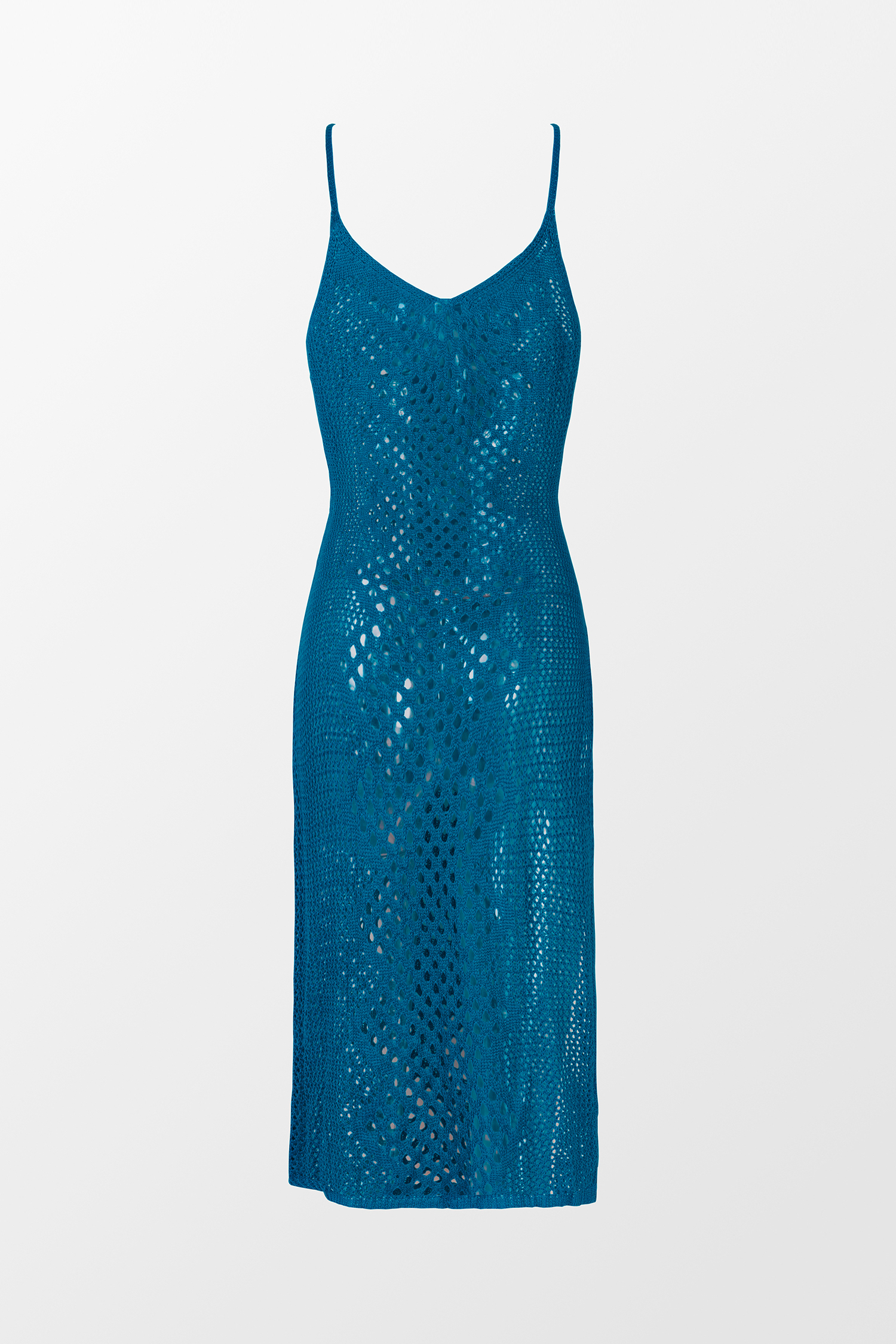 Midnight Blue Sheer Crochet Cover-Up Dress