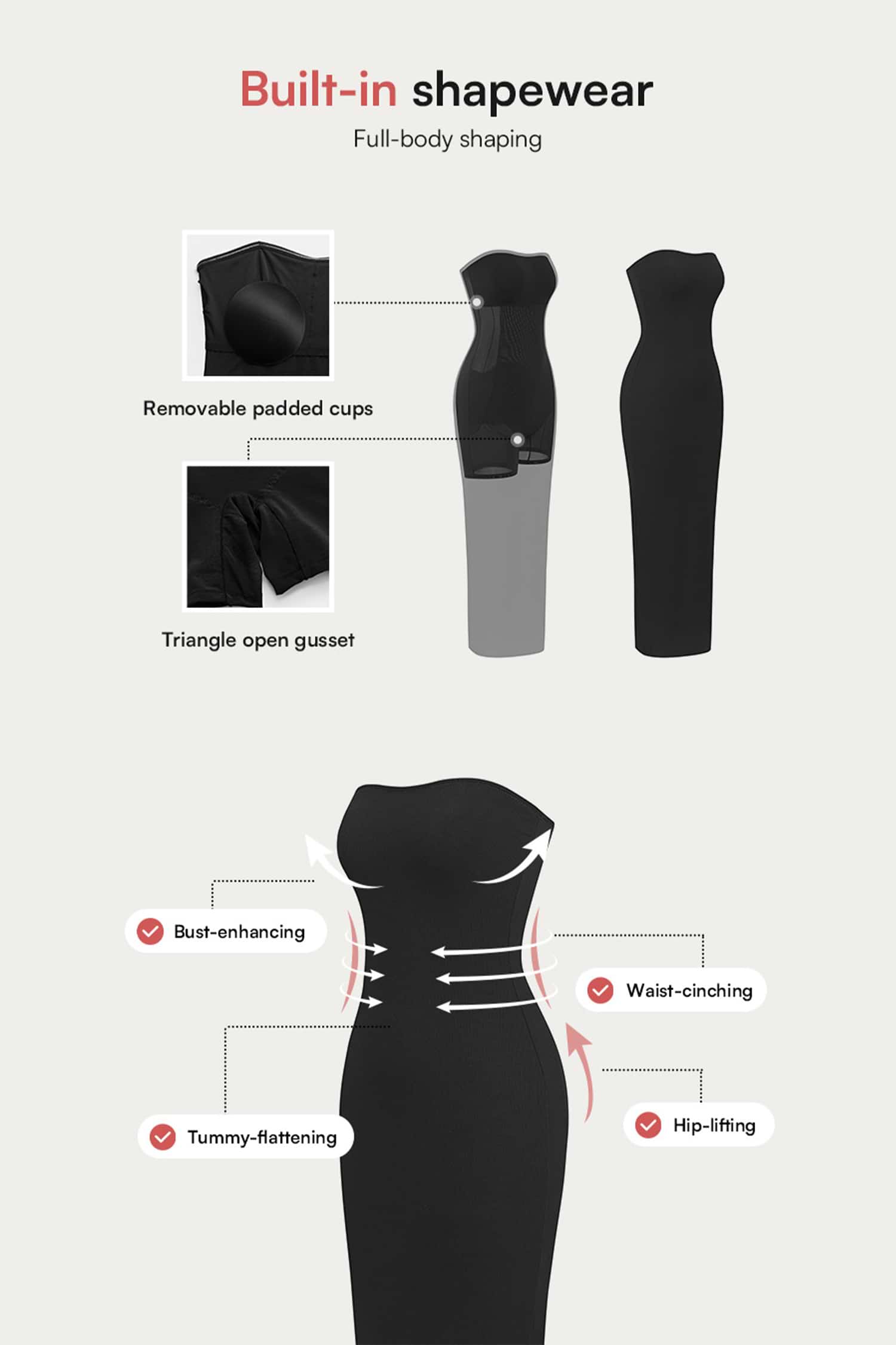 The Midnight Silhouette Black Maxi Dress brings flirty, confident energy to any occasion! A sweetheart neckline and sleeveless design pair with built-in shapewear and a flowing maxi length for a flattering, effortlessly elegant look.